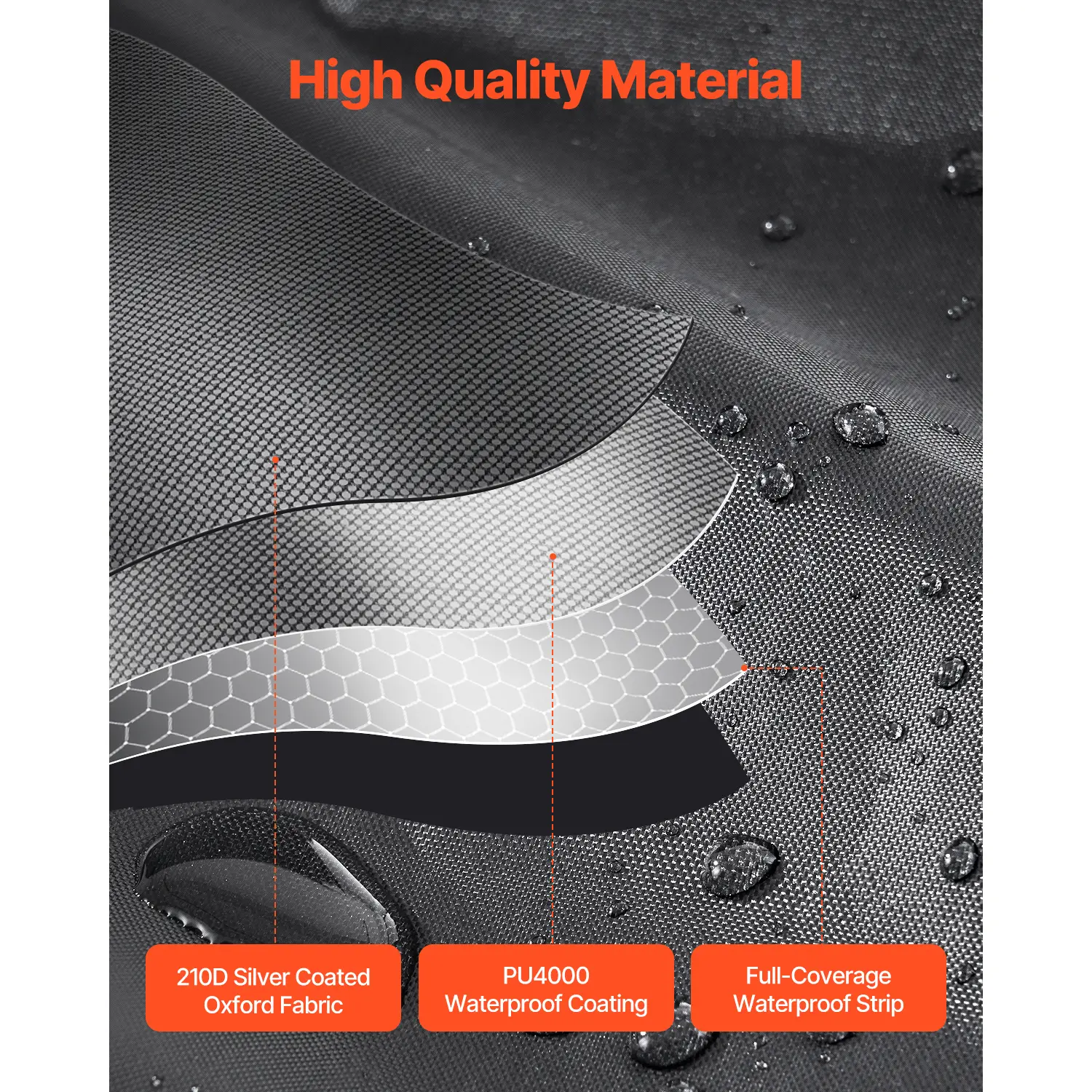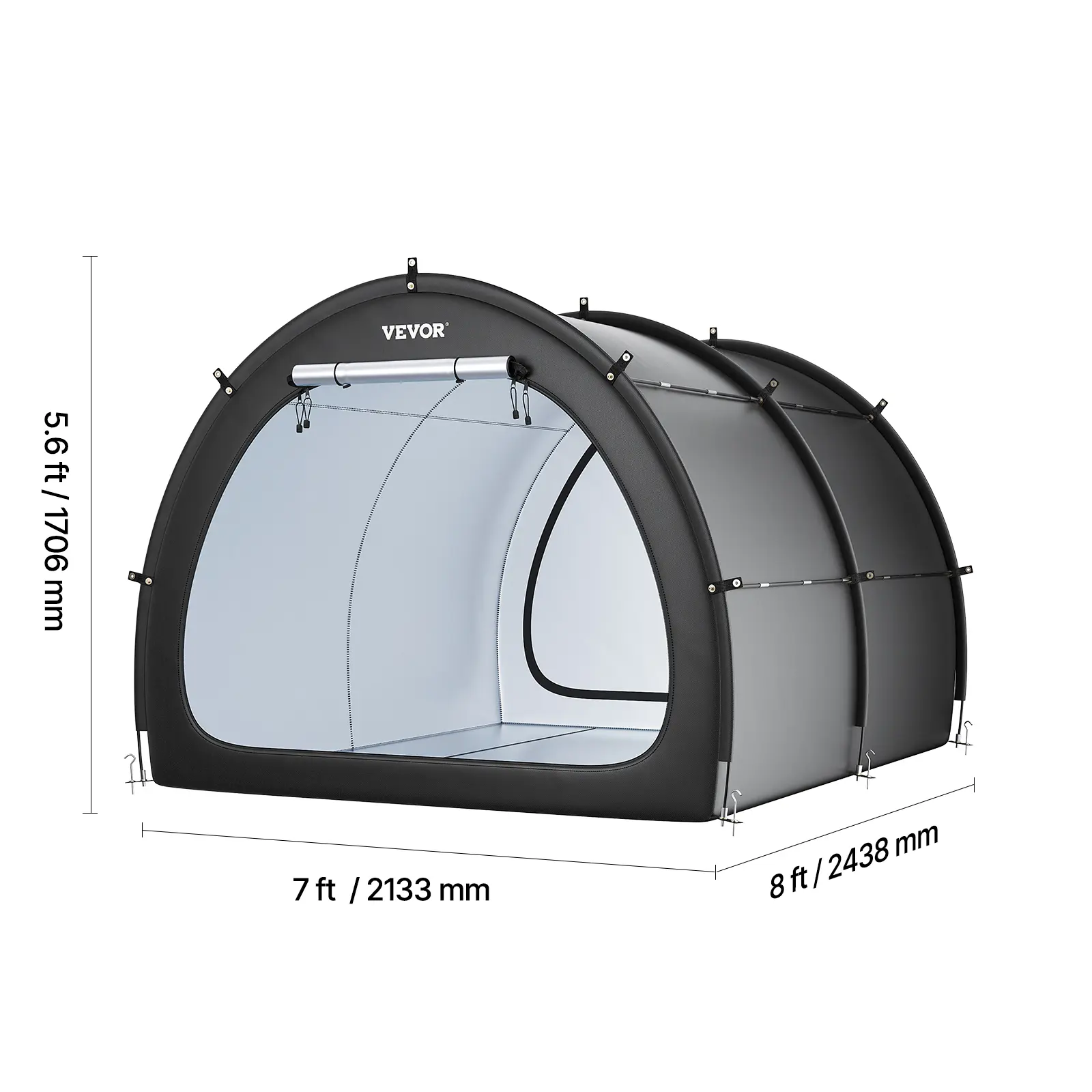 • Comprehensive Coverage: Our bike shed features a professional-grade dual waterproof coating and silver-coated 210D Oxford fabric. The outer layer of 210D silver-coated Oxford fabric combined with a PU4000 waterproof coating, full-coverage waterproof tape, and arched-top design avoid water pooling, keeping the interior dry. Sunshade material further extends its lifespan.