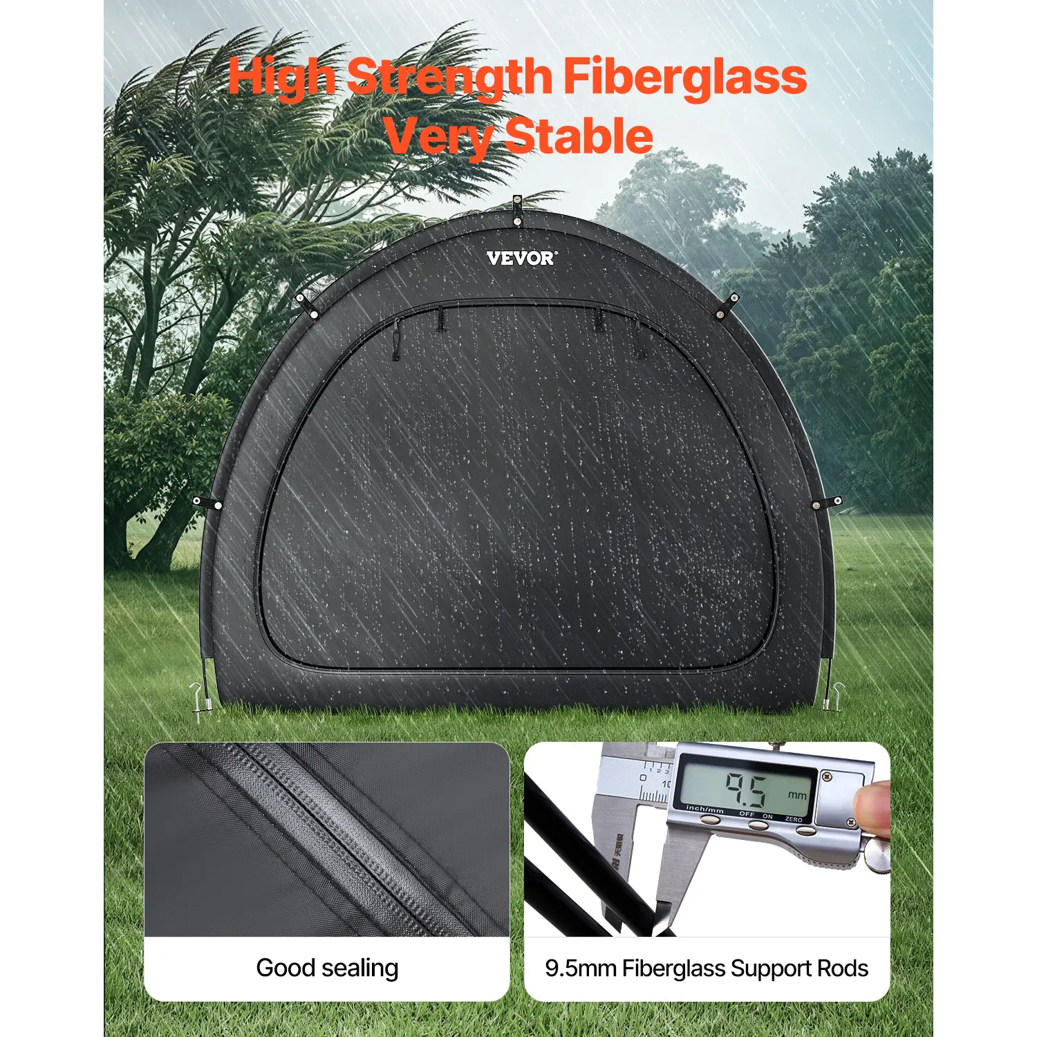 • Sturdy & Durable: Built with a reinforced fiberglass frame and a multi-point triangular stabilization structure, our bike shed remains stable and deformation-free. The fiberglass poles with a 9.5mm inner diameter offer good corrosion-resistance and insulation, making it ideal for long-term outdoor use.