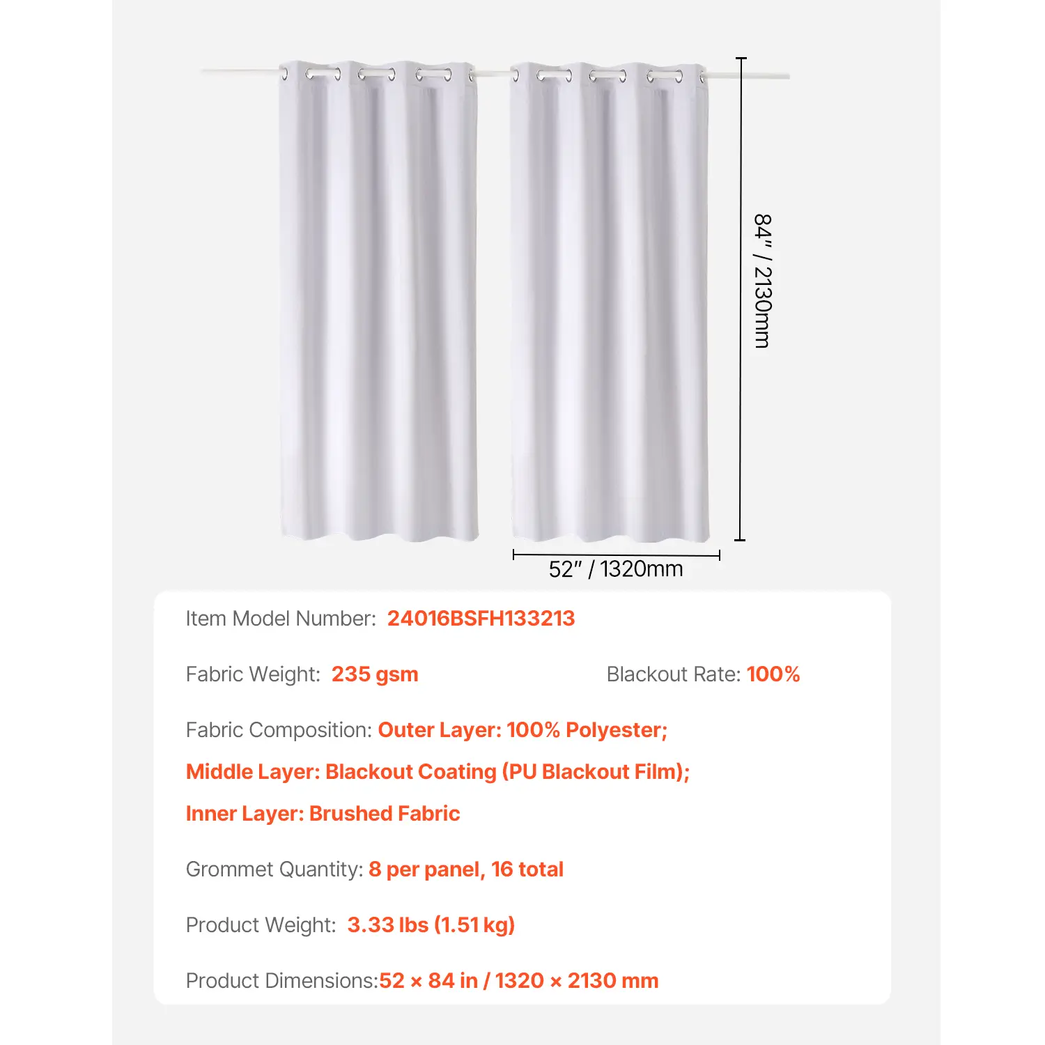 • Durable Grommet Design: Each panel is equipped with 8 sturdy stainless steel grommets (1.6-inch inner diameter) for effortless installation and smooth sliding. The rust-proof design ensures long-lasting durability, maintaining its flawless look even after extended use