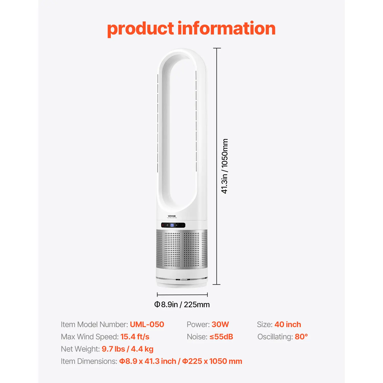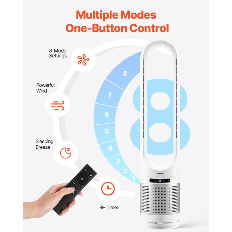 • Quiet Operation: This bedroom fan features a bladeless design, significantly reducing noise levels to ≤55dB during operation. It is also more pet- and child-friendly, providing a secure and quiet environment while you enjoy the coolness
