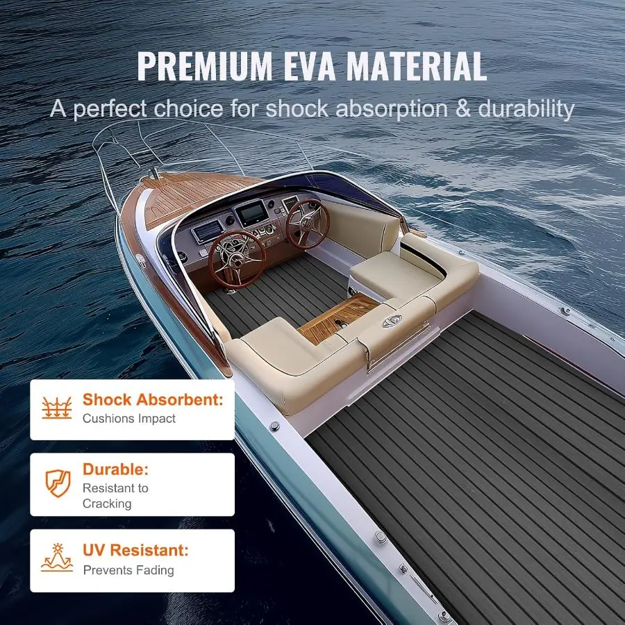 5. VEVOR Boat Flooring with 3M Adhesive, EVA Foam Boat Decking 94.5x 23.6(2 Rolls) Non - Slip Self - Adhesive Flooring, 31.1sq. ft Marine Carpet for Boats Yacht Pontoon Kayak Decking RV Floor