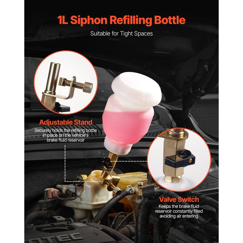 • Lightweight & Portable: Featuring a convenient carrying handle and a lightweight design at just 3.59 lbs, this kit is easy to transport and move, making it ideal for outdoor brake fluid replacement needs.