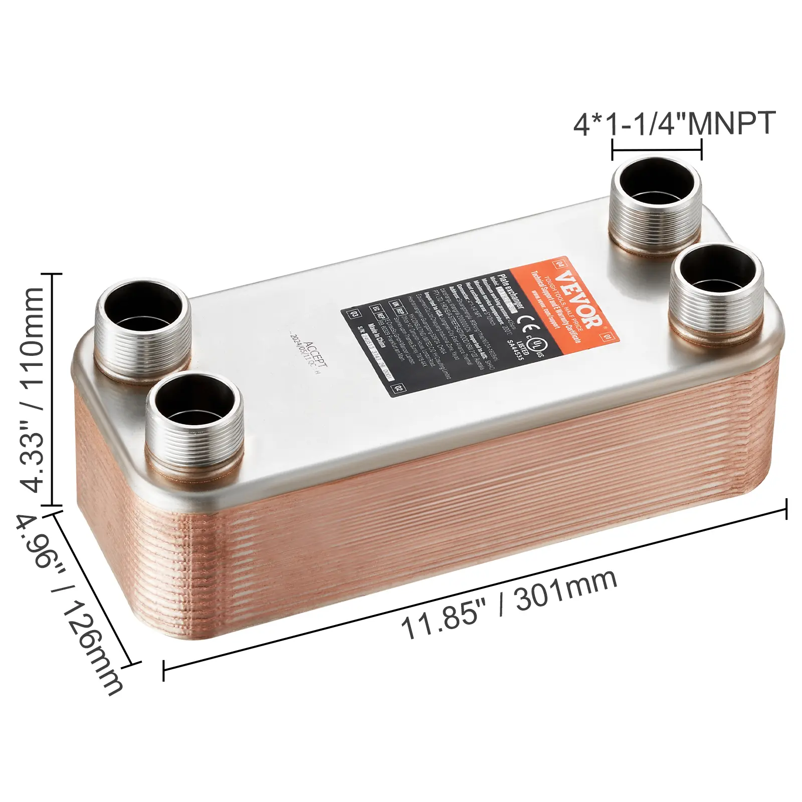• High-Quality Materials: Made of 316L stainless steel with 99% copper brazing at edges and contact points, forming a robust and leak-resistant unit that withstands high pressure and temperature. UL and CE certified for reliable quality.