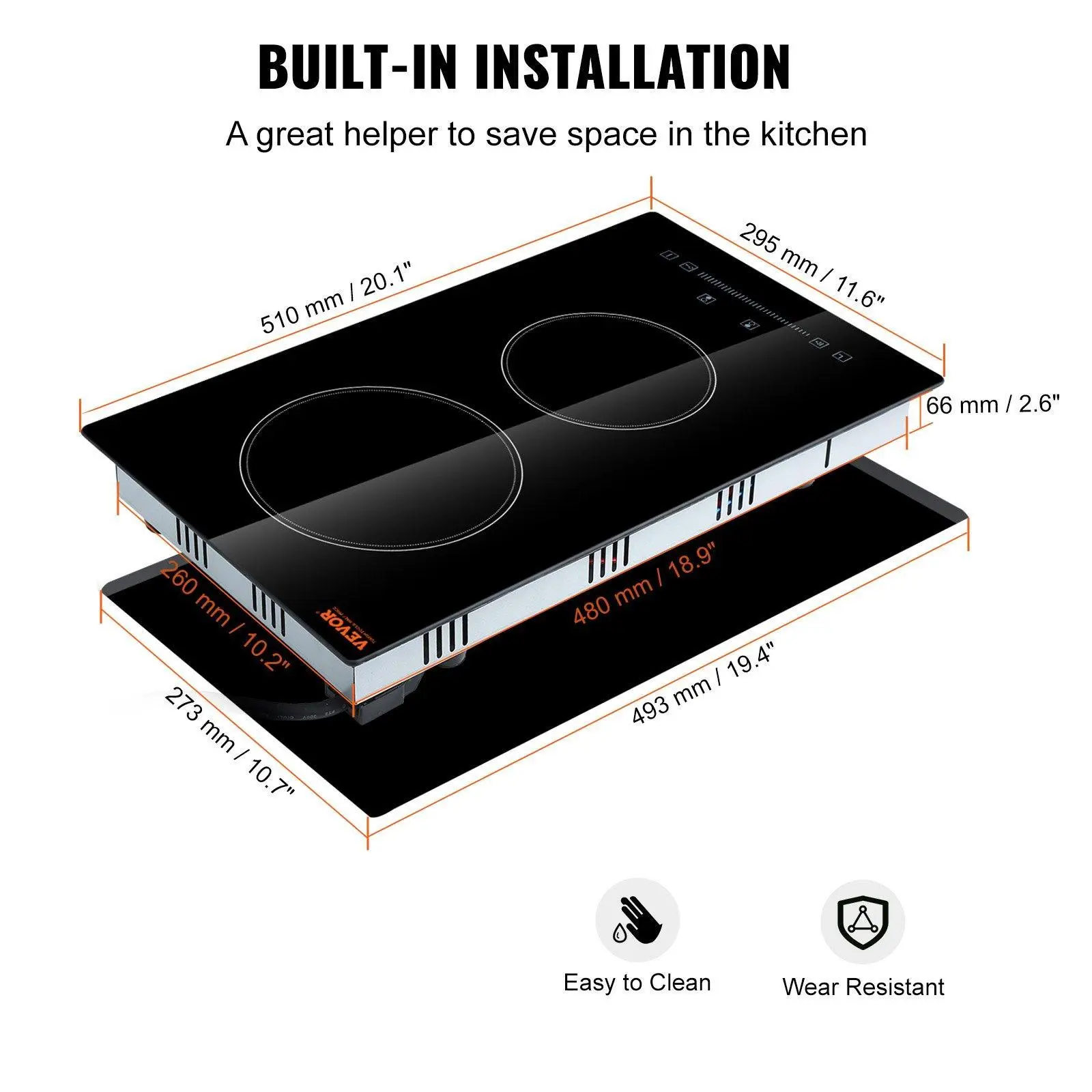 ·Built-in Design: With the 10.7x19.4-inch cutout size, this 11.6x20 inch cooktop adopts a built-in design, convenient for you to install and saves your kitchen space. Suitable for voltages of 110-127V, 50/60Hz. NOTE: The power plug is a US Plug (UL 1026), please confirm if the socket matches before purchasing.