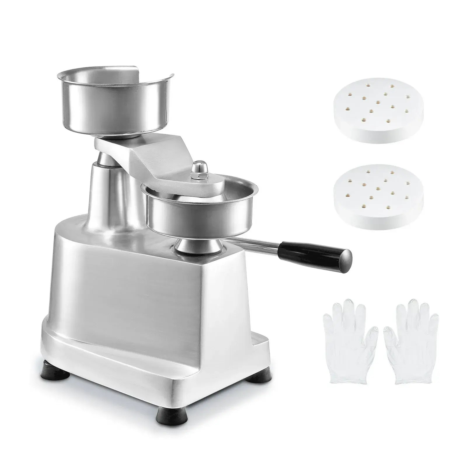 Elevate your burger game with the VEVOR Commercial Burger Patty Maker. This 130mm/5-inch machine is perfect for commercial kitchens. It features a heavy-duty food-grade stainless steel bowl, ensuring durability and safety. The press machine is a kitchen meat forming processor, making it ideal for large-scale production. Comes with 1000 pcs patty papers for easy use.