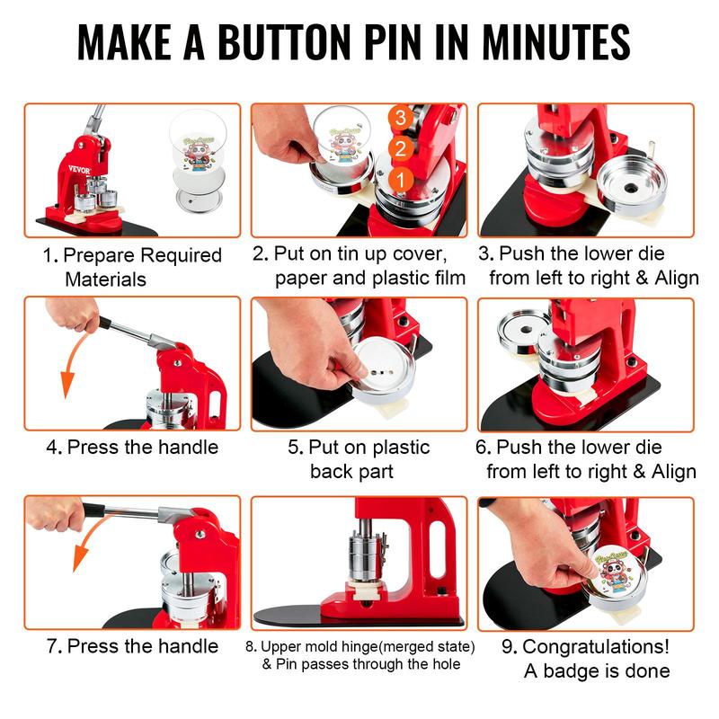 • Easy to Use: The user manual features detailed operation instructions that explain how to install molds and make badges. The operation process is simple. Believe us, you will learn it quickly! The sound structure will make your badge-making journey safer and more convenient. Get ready to start creating!