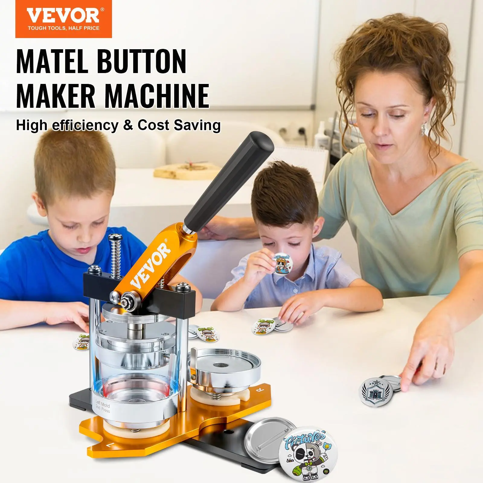 • Labor-Saving Handle: The Ergonomics-designed handle of the button maker machine offers a comfortable grip. It can save more effort and improve your efficiency.