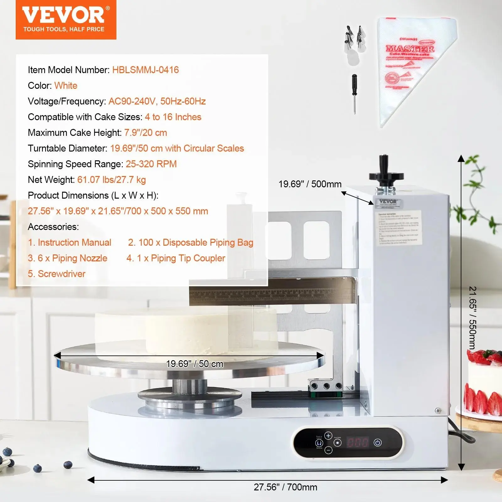 Enjoy a smooth operation with a rotating speed of 25-320 RPM. This speed ensures even distribution of icing and decorations. The machine's adjustable scraper allows for precise finishing. Its white design complements any kitchen setup. Transform your baking projects with this efficient and user-friendly tool.
