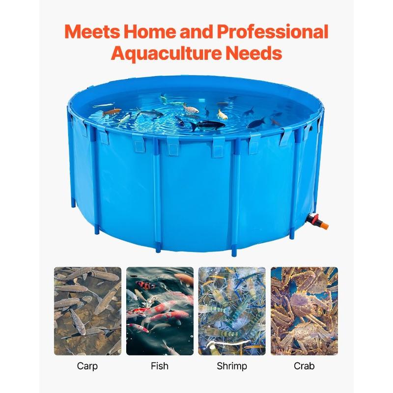 VEVOR Canvas Fish Pond, 470 Gal Above Ground Fish Pond, PVC Koi Tank with Clear Viewing Panel, Rectangular Goldfish Tank with Stainless Steel Frame Drain Valve, for Breeding Koi, Irrigation(Black)VEVOR Canvas Fish Pond, 1320 Gal Capacity Above Ground Fish Pond, Foldable PVC Koi Tank, Round Goldfish Tank with Stable Frame and Drain Valve, for Aquaculture, Koi Breeding, and Irrigation (Blue) Portable Above-Ground Fish Pond Powerful Support Easy Cleaning Complete
