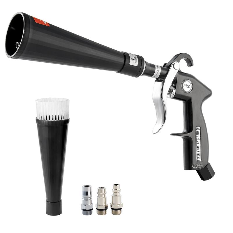 • Multi-functional Cleaning Gun: This vortex cleaning gun comes with two nozzles: the brush nozzle is ideal for cleaning the car’s exterior (body, roof, doors), while the blow nozzle is specially designed for hard-to-reach corners and gaps inside the car (such as seat seams, dashboard, and air vents), making it easy to handle deep cleaning both inside and outside your vehicle.