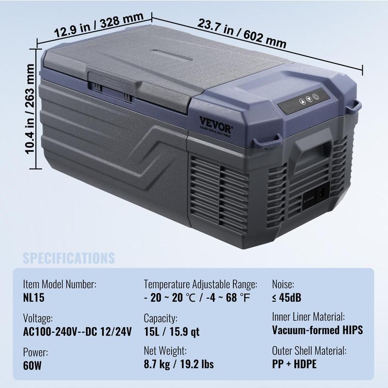 • Dual Use for Home/Car: The car fridge comes with 110/240V AC and 12/24V DC adapters, allowing it to be used at home, on yachts, RVs, cars, trucks, and vans.
