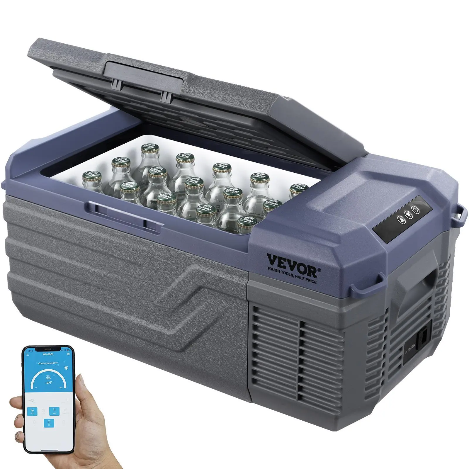 • LED Screen & Bluetooth Control: The LED control panel allows you to directly view the operation status of the car fridge and adjust the temperature range at any time. You can set any temperature between -20°C to 20°C / -4°F to 68°F on the panel. The electric cooler also features Bluetooth mode, connecting to a mobile app for remote control.