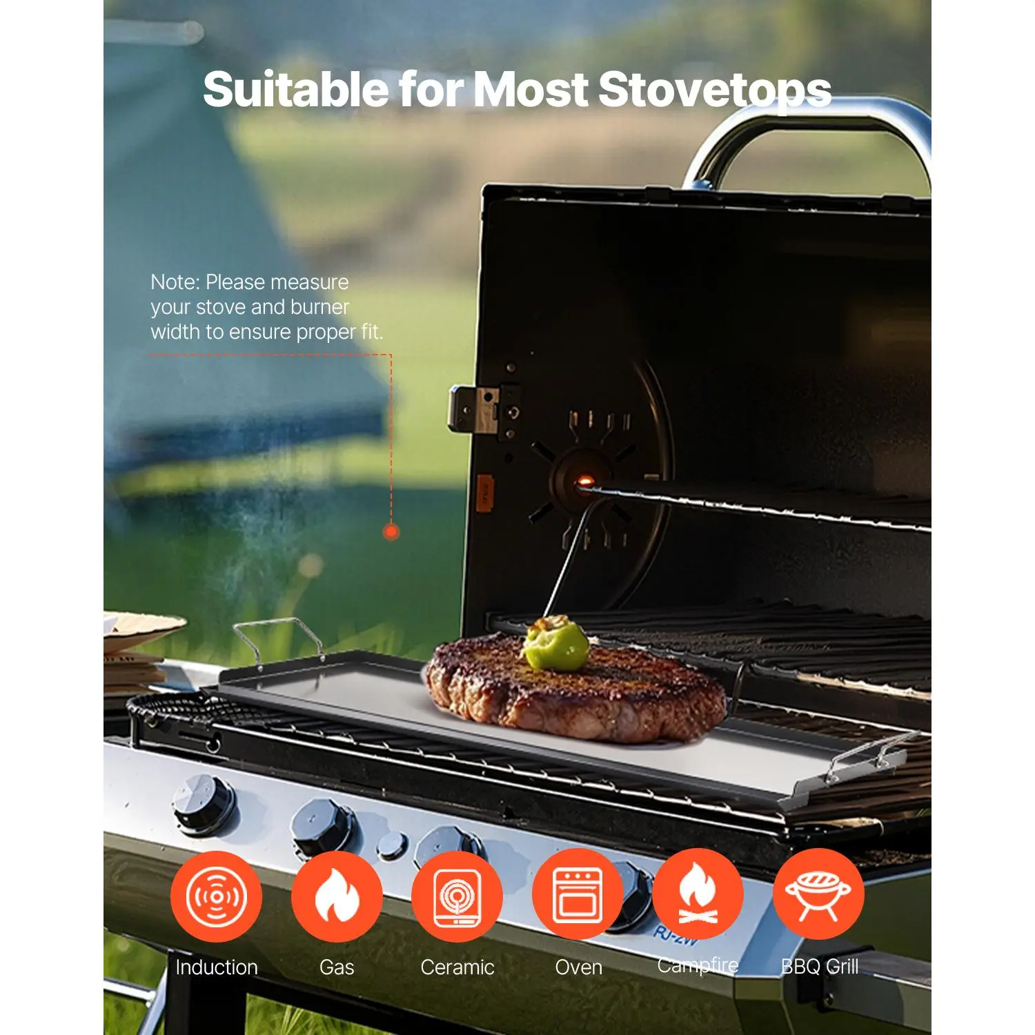 • Suitable for Most Stovetops: Whether you have a gas, electric, or induction stovetop, this griddle for gas grill is compatible with all. Its sturdy design ensures consistent heat distribution, providing excellent results on most cooking surfaces