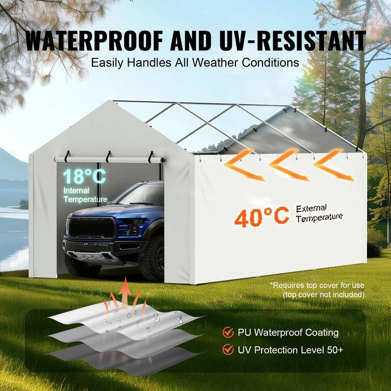 • 10'x20' Practical Size: This side canopy fabric features a 4-panel front door with a dual zipper structure, designed for use in replacing side canopy fabric on 10'x20' garage frames. Spacious and perfectly sized to fit snugly (Includes only the side canopy fabric, frame not included).