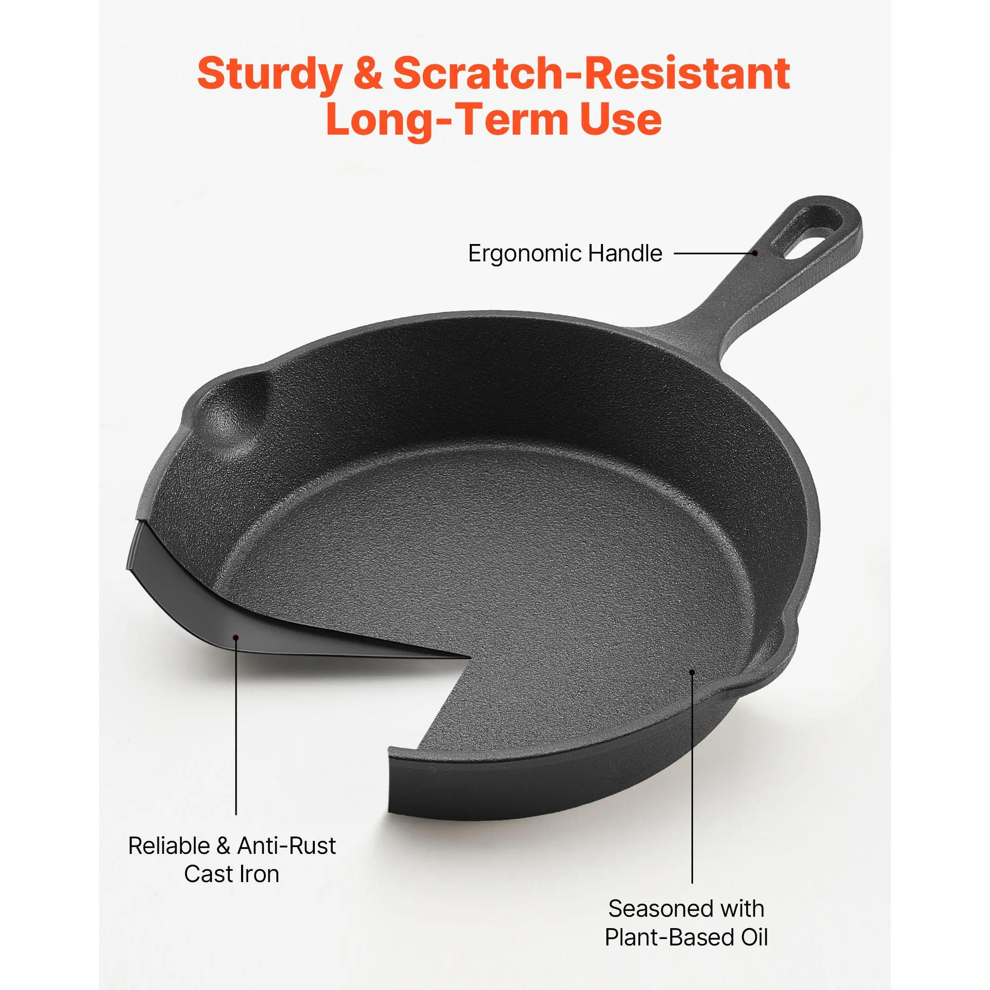 • Crafted from tough cast iron with a natural oil coating, these pans ensure excellent heat retention and durability. The sturdy cast iron body reduces surface scratches and maintains its shape over time. Trust in their long-lasting performance.