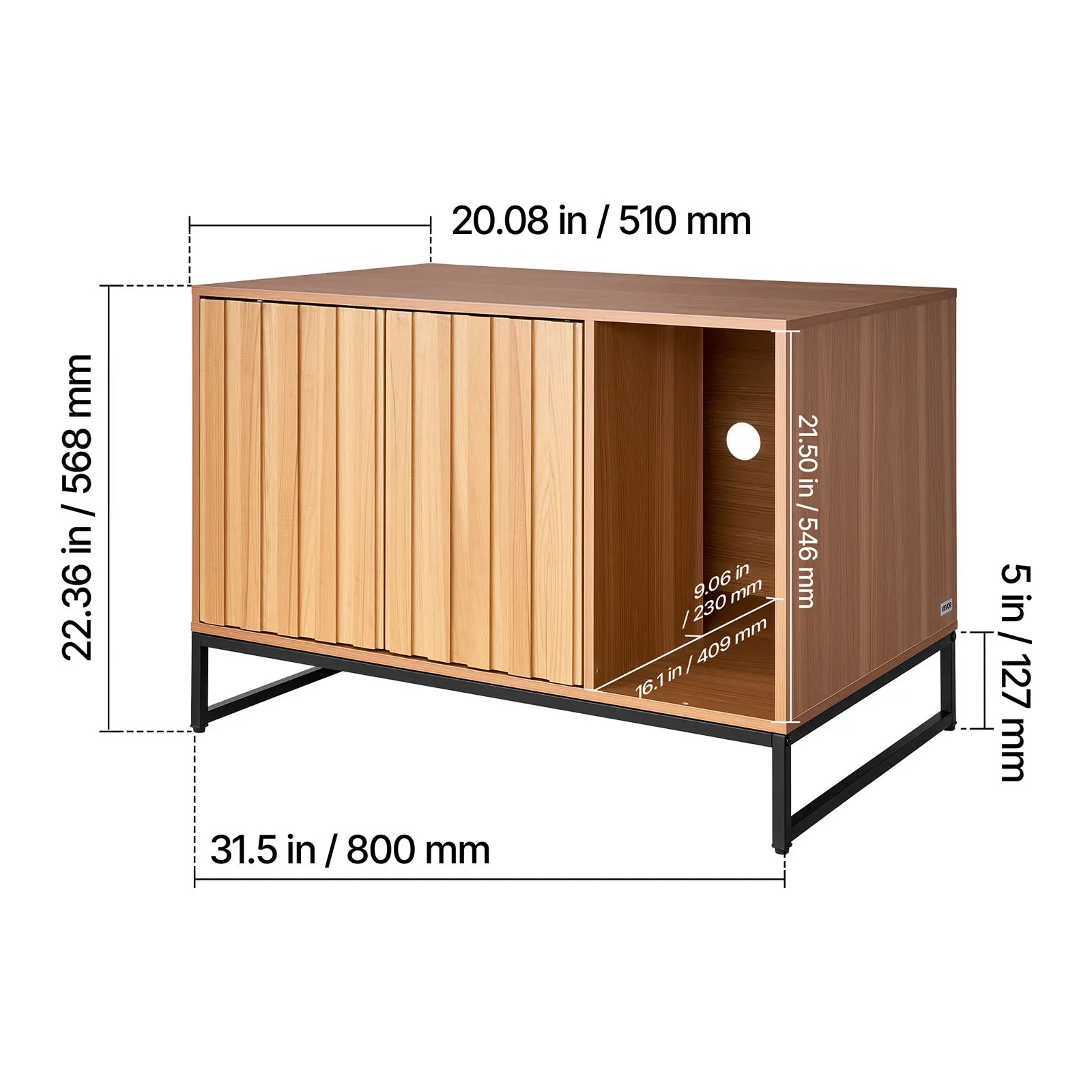• Multi-Scenarios Use: The cat litter furniture hidden serves as storage tables, bedside tables, coffee tables, entryway cabinets, or cat resting areas. The wood-textured wave-grooved door panel with black metal legs easily blends into various home styles