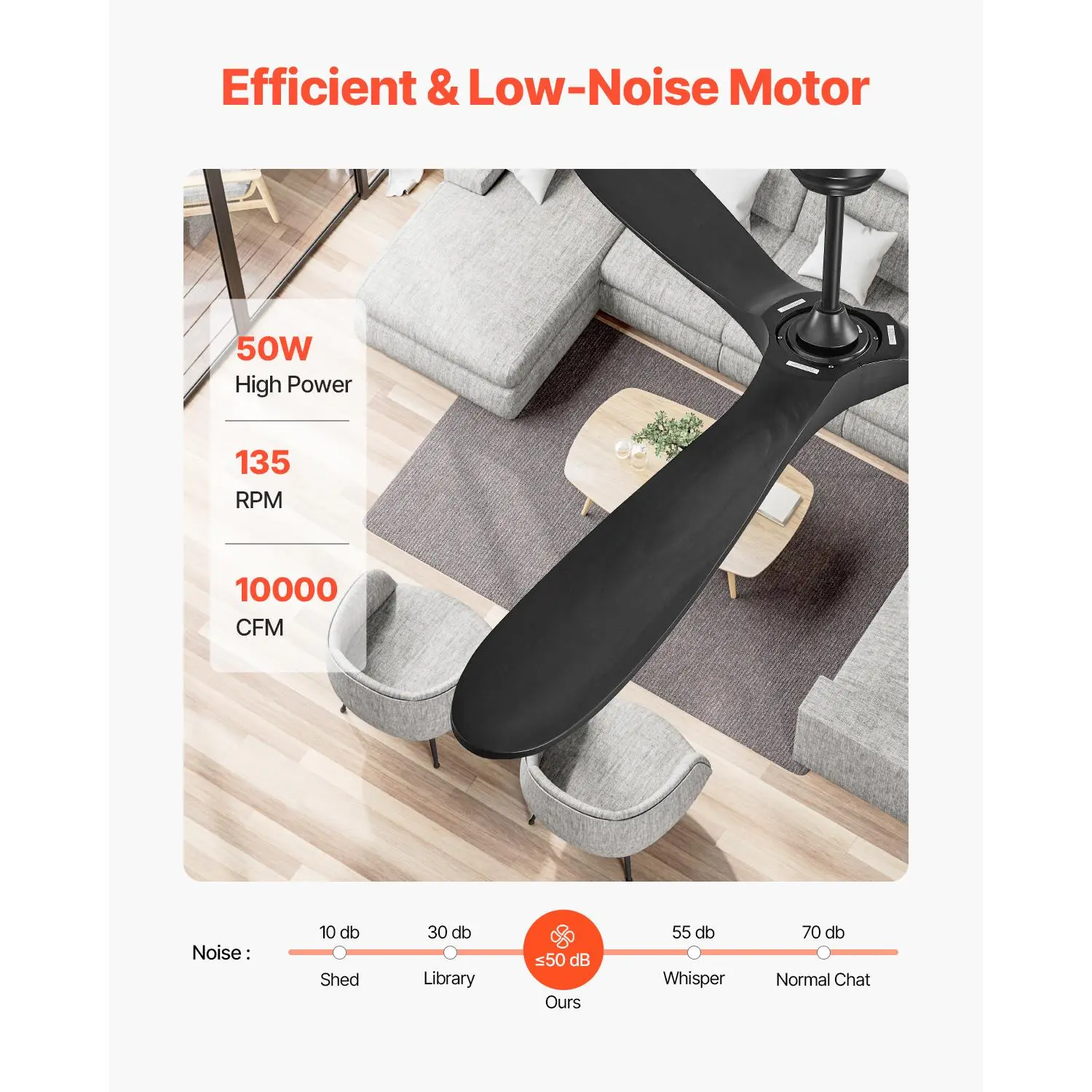 • Quiet DC Motor: This bedroom ceiling fan features a high-efficiency DC motor with 65W power, an airflow of up to 11,000 CFM, and operates at a low noise level of ≤45dB, providing you with a quiet and comfortable breeze.Even late at night, the low noise level won’t disturb your sleep, allowing you to enjoy a peaceful and cool summer night.