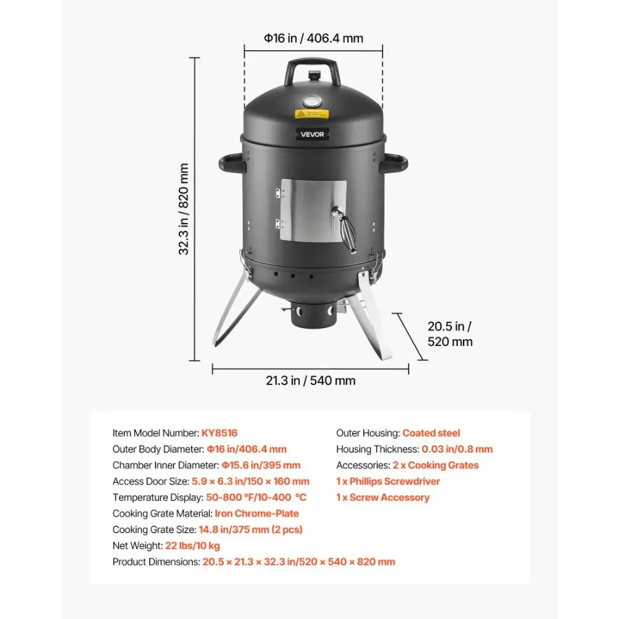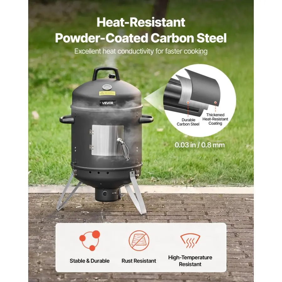 VEVOR Charcoal Offset Smoker, Heavy - Duty Steel BBQ Offset Smoker with Side Firebox, Movable Outdoor Barbecue Smokers with 6 Adjustable Grates, Thermometer Air Vents for Backyard Patio Party CookingVEVOR Charcoal Smoker, 16" Vertical Charcoal BBQ Grill, Coated Steel Barbecue Smoker with 2 Grilling Grates, Thermometer, Air Vents & Removable Ash Tray, Ideal for Backyard Patio Parties Cooking Multi-Functional Charcoal Smoker Wide Cooking Grate Multiple Designs User-friendly