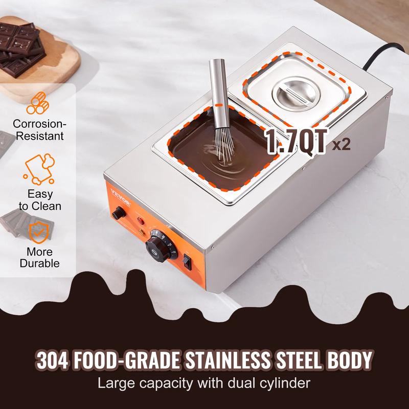 ·2 Large Capacity Cylinders: This stainless steel chocolate melter pot includes 2 independent cylinders. You can use one for melting chocolate and the other for melting milk or cream, which helps to improve efficiency in both work and daily life. Each pot has a capacity of 1.7 qt, serving a large number of people simultaneously.