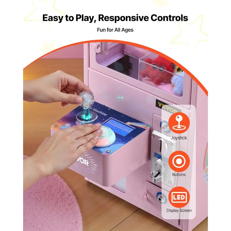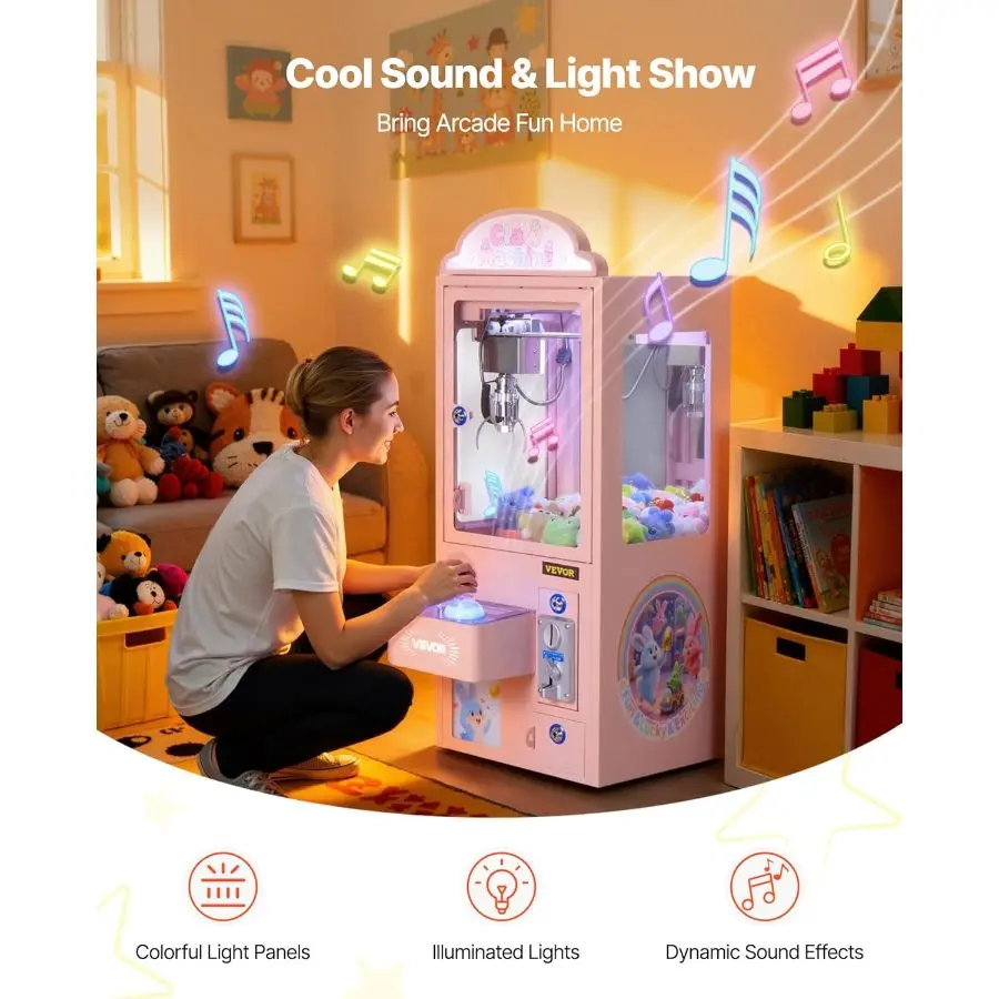 VEVOR Claw Crane Machine, Medium - Sized Arcade Game Machine with Light Sound, Adjustable Steel Claws, Precise Toy Candy Grabber Prize Dispenser Vending Toy, for Commercial Home Cinema, Black PurpleVEVOR Super Brand Day