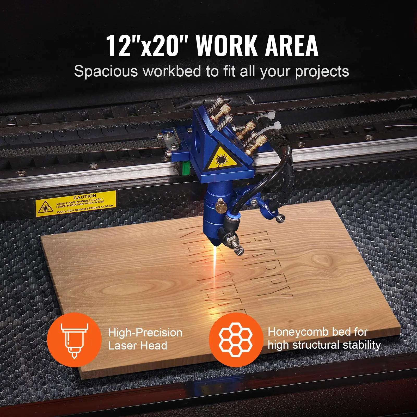 5. VEVOR 50W CO2 Laser Engraver, 12 x 20 in, 19.7 IPS Laser Cutter Machine with 2-Way Pass Air Assist, Compatible with LightBurn, CorelDRAW, AutoCAD, Windows, Mac OS, Linux, for Wood Acrylic Fabric More