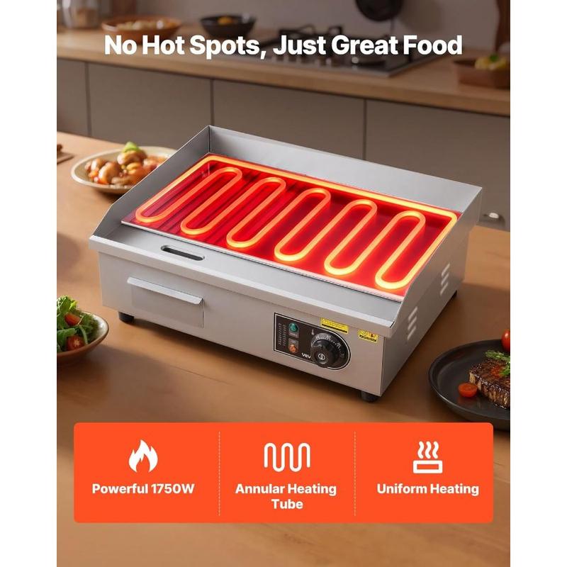 VEVOR Commercial Electric Griddle, 13.98x 11.81 inch, 1750W, 122 - 570F Adjustable Temp Control, Stainless Steel Countertop Flat Top Grill with 2 Spatulas and 2 Brushes, for Steak, Pancake, SquidVEVOR Commercial Electric Griddle, 13.98x 11.81 inch, 1750W, 122 - 570F Adjustable Temp Control, Stainless Steel Countertop Flat Top Grill with 2 Spatulas and 2 Brushes, for Steak, Pancake, Squid