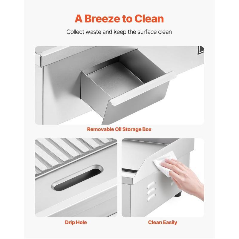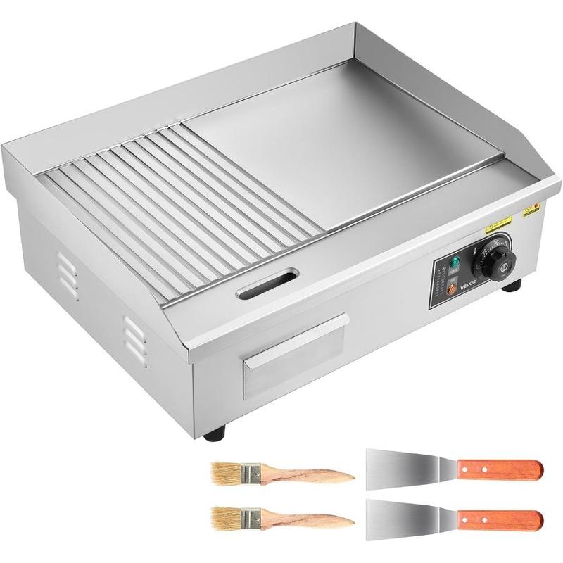 5. VEVOR Commercial Electric Griddle, 13.98x 11.81 inch, 1750W, 122 - 570F Adjustable Temp Control, Stainless Steel Countertop Flat Top Grill with 2 Spatulas and 2 Brushes, for Steak, Pancake, Squid