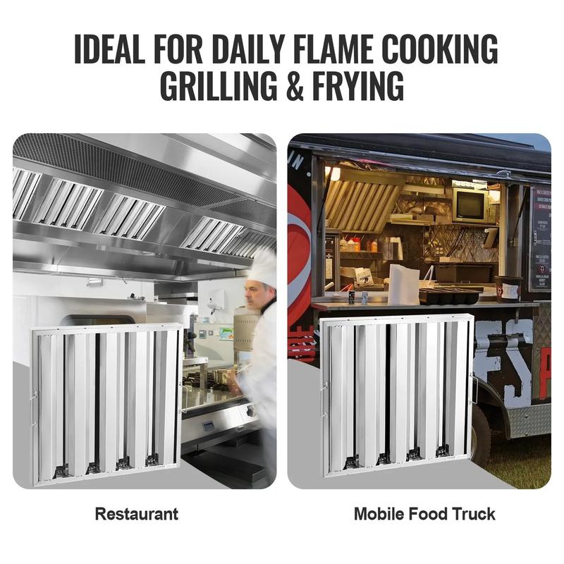 Each package contains 2 VEVOR Commercial Hood Filters. These filters are specifically crafted for restaurant range hoods. They are rated for commercial use, ensuring they meet the demands of busy kitchens. The filters are designed to handle grease effectively, maintaining a clean and efficient exhaust system.