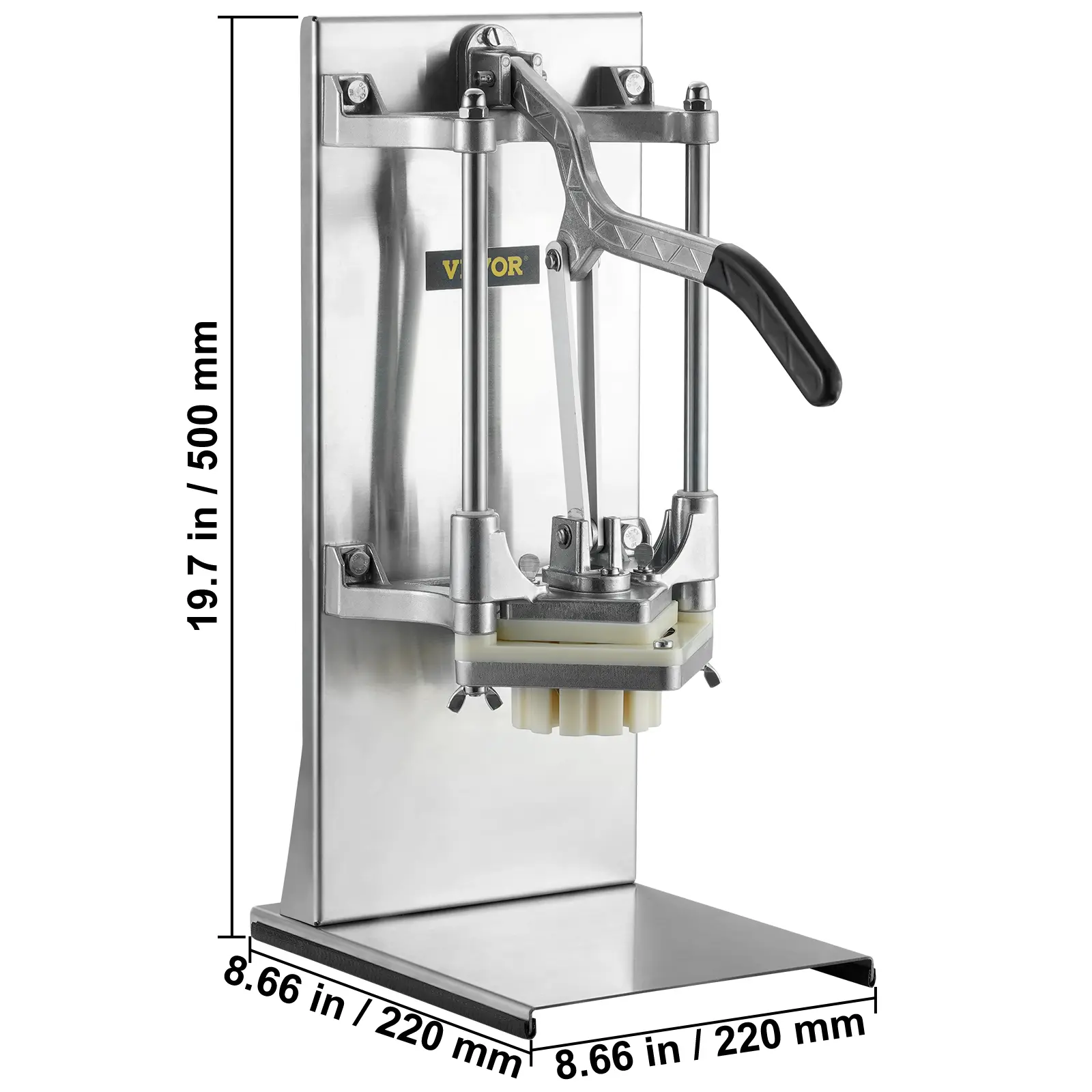 • 4 Blades Available: The commercial chopper is equipped with four blades 1/4", 3/8", 6-Wedge, 6-Wedge Corer, which is sharp and sturdy. It also comes with four spare blades. You can use this cutter to cut vegetables and fruits into different sizes and shapes according to their own needs.
