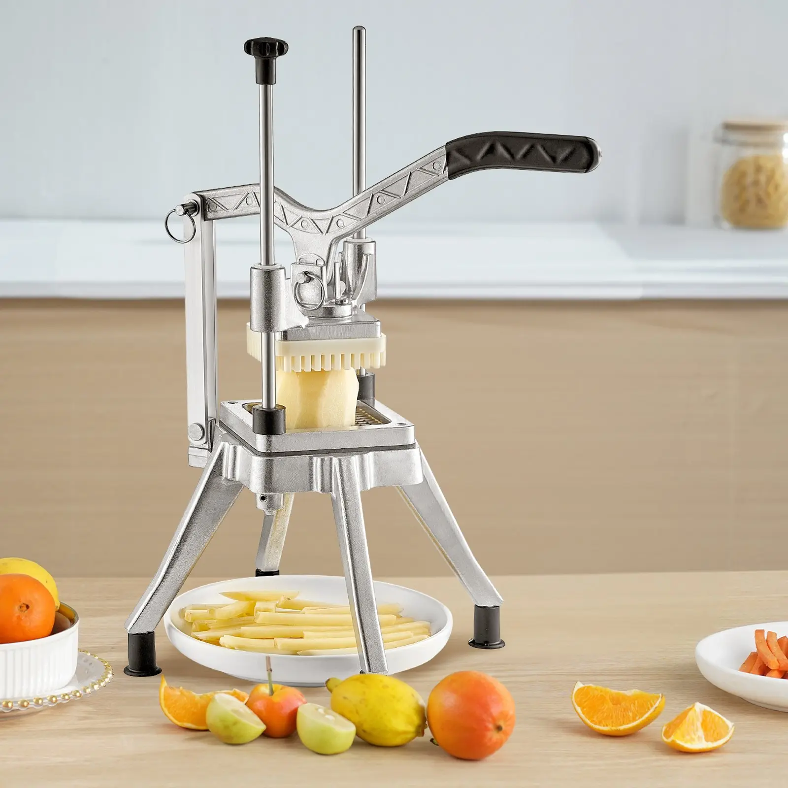 ·Multipurpose Vegetables Fruits Chopper: The heavy-duty chopper is very suitable for restaurants and home kitchens. It can be used to cut potatoes, carrots, cucumbers, apples, pears, and other vegetables and fruits. It is ideal for those who want to prepare vegetables and fruits for salads, French fries, and desserts conveniently and quickly.