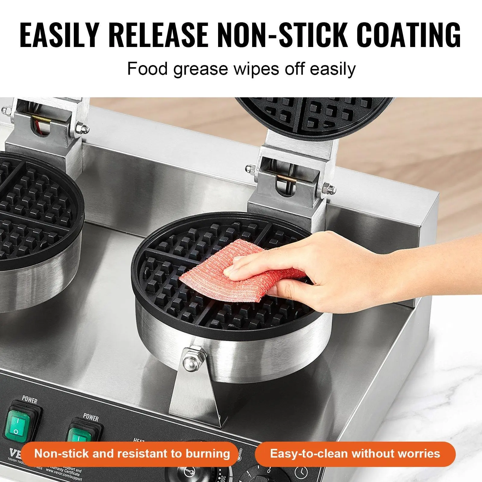 ·Carefully Designed Details: The spiral design with stainless steel handles helps prevent accidents like slipping, overheating, and accidental burns. Four rubber feet at the base enhance stability during operation. The hinge connecting the two heating plates supports flexible closing and opening. Moreover, it comes with a range of accessories to aid in baking.