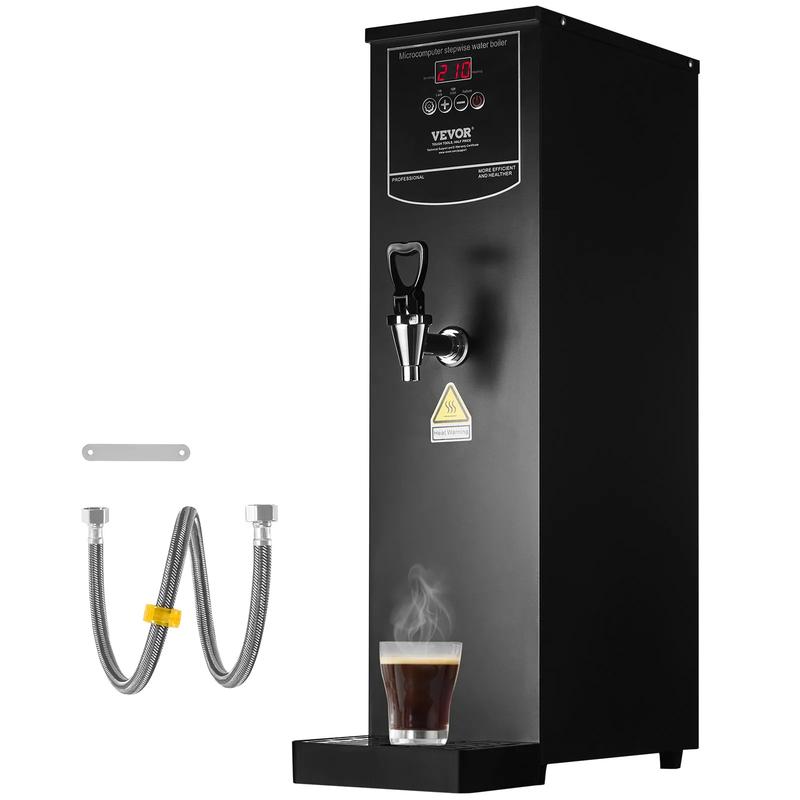 The VEVOR Commercial Water Boiler is a powerful electric hot water dispenser. It features a 316 Stainless Steel heating tube for durability and efficiency. This boiler is perfect for coffee, tea, restaurants, and offices. It offers a step-by-step fast heating process, ensuring quick water availability. With a 1500W power output, it heats 50L of water per hour. Ideal for commercial settings, it provides reliable hot water solutions.