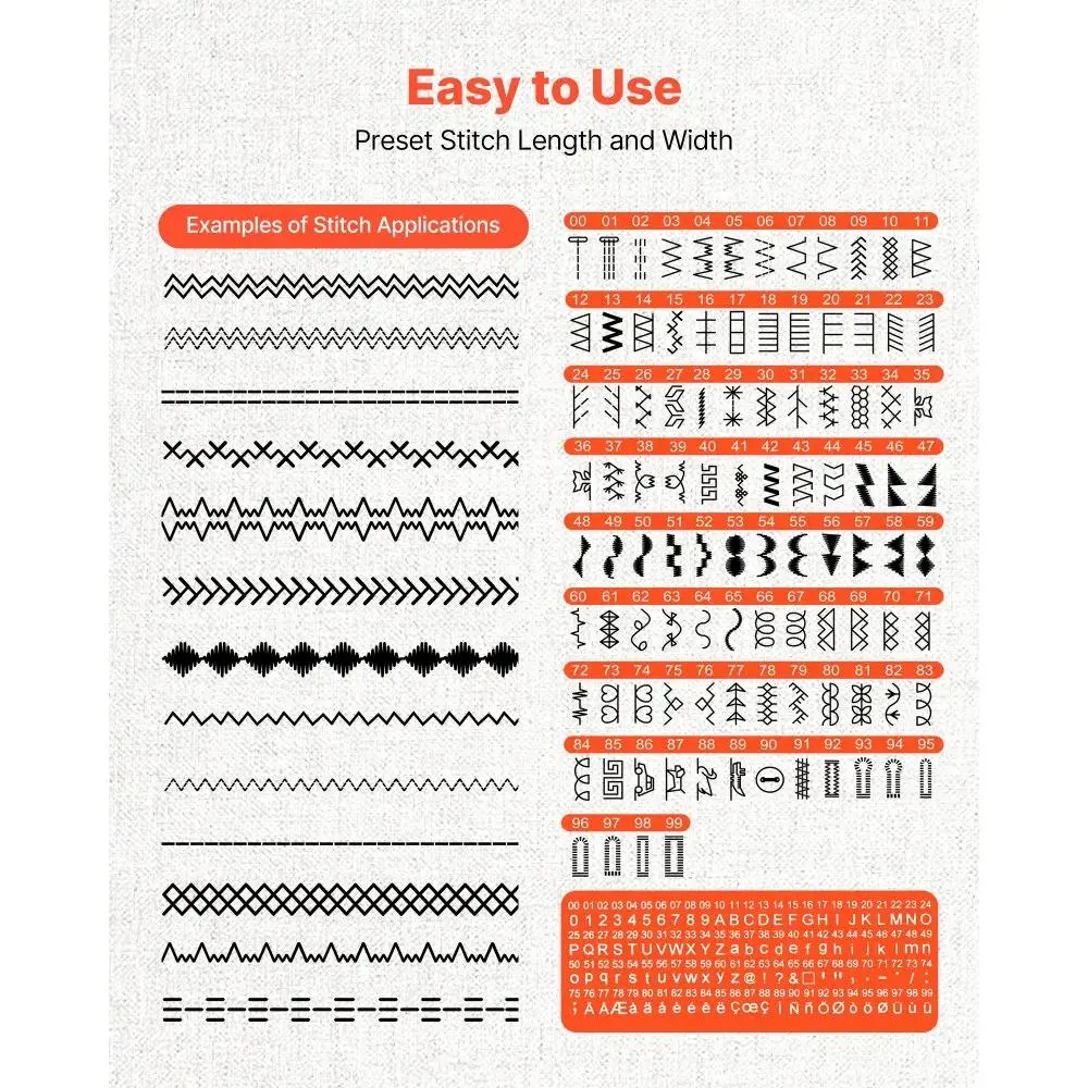 Preset needle position, stitch length, and width save setup time. Adjustable thread tension and built-in automatic needle threader simplify operation. Ideal for beginners and efficiency-focused users. Get started easily with this user-friendly machine.
