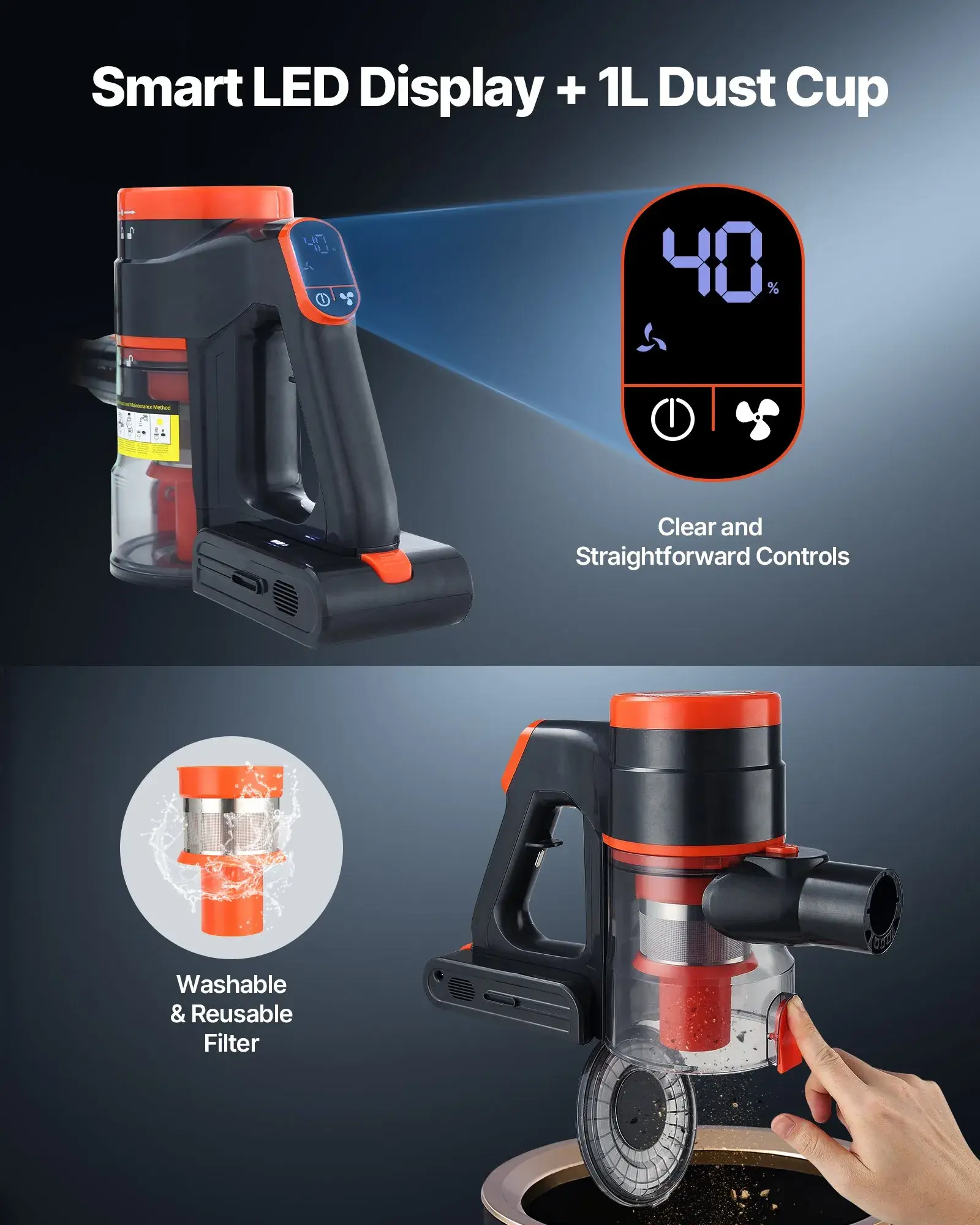 ·Dual Filtration for Efficient Purification: Our stick vacuum combines a metal mesh pre-filter and a high-density HEPA filter to capture hair and large debris while protecting and extending the HEPA filter’s lifespan. The washable metal filter is reusable, reducing maintenance costs