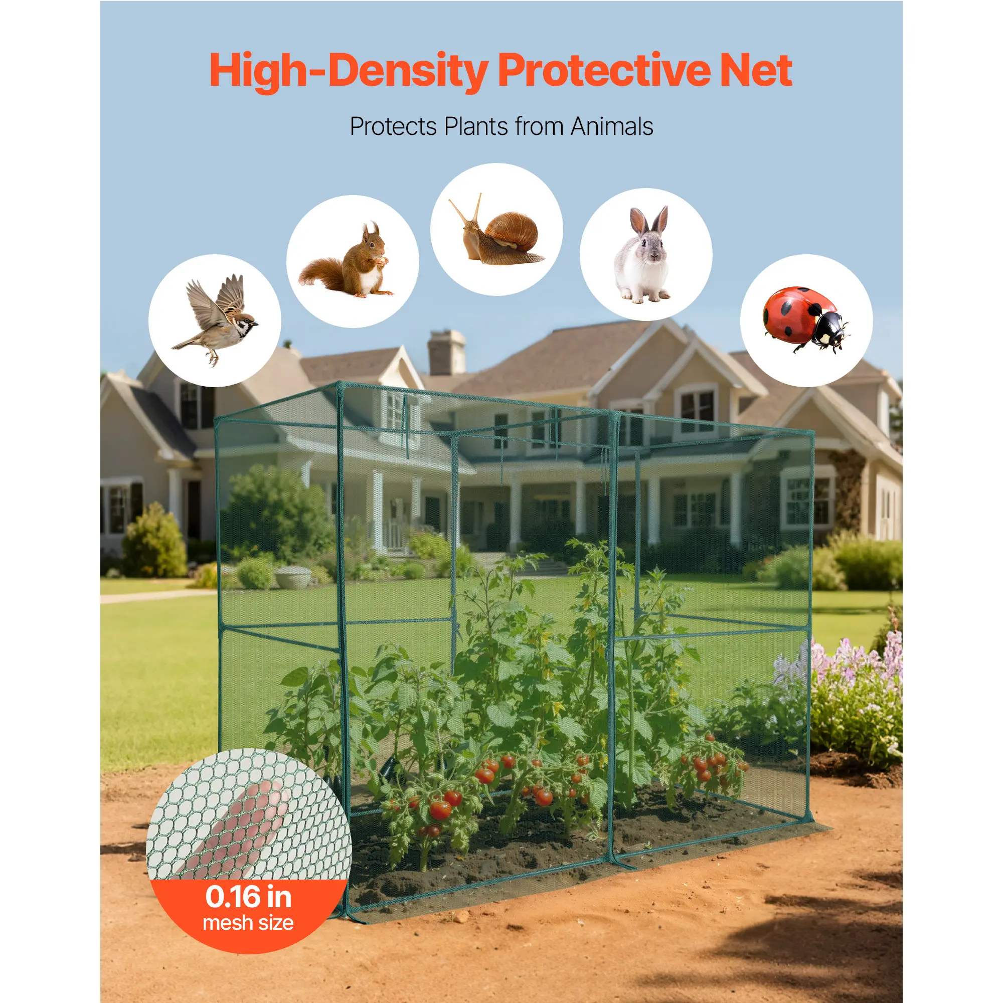 • Effective Protection: Crafted from a 0.16 in/4 mm tear-resistant polyester mesh, the crop cage keeps plants from animals. Its air holes allow air circulation, sunlight exposure, and water penetration, ensuring sufficient nutrients for plant growth