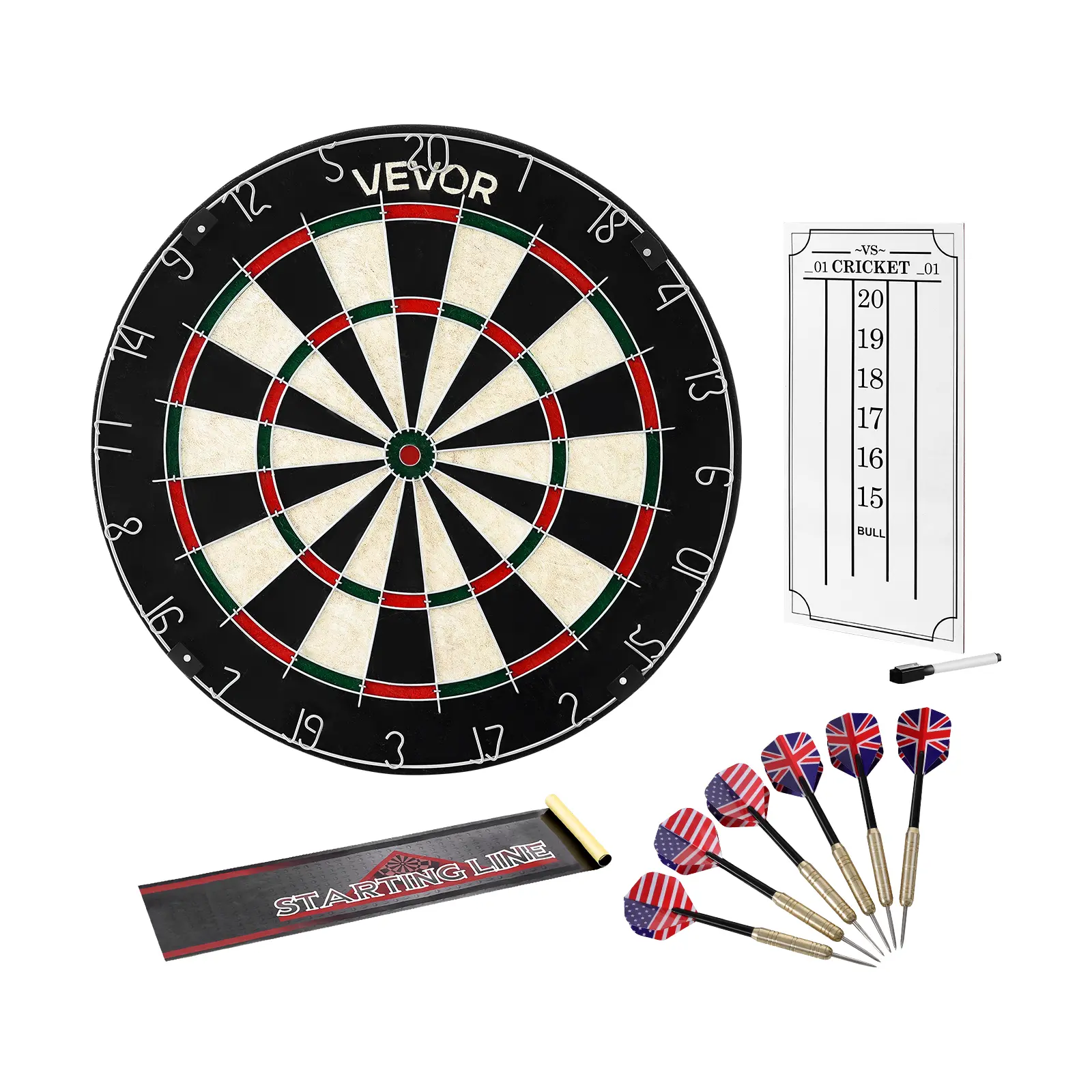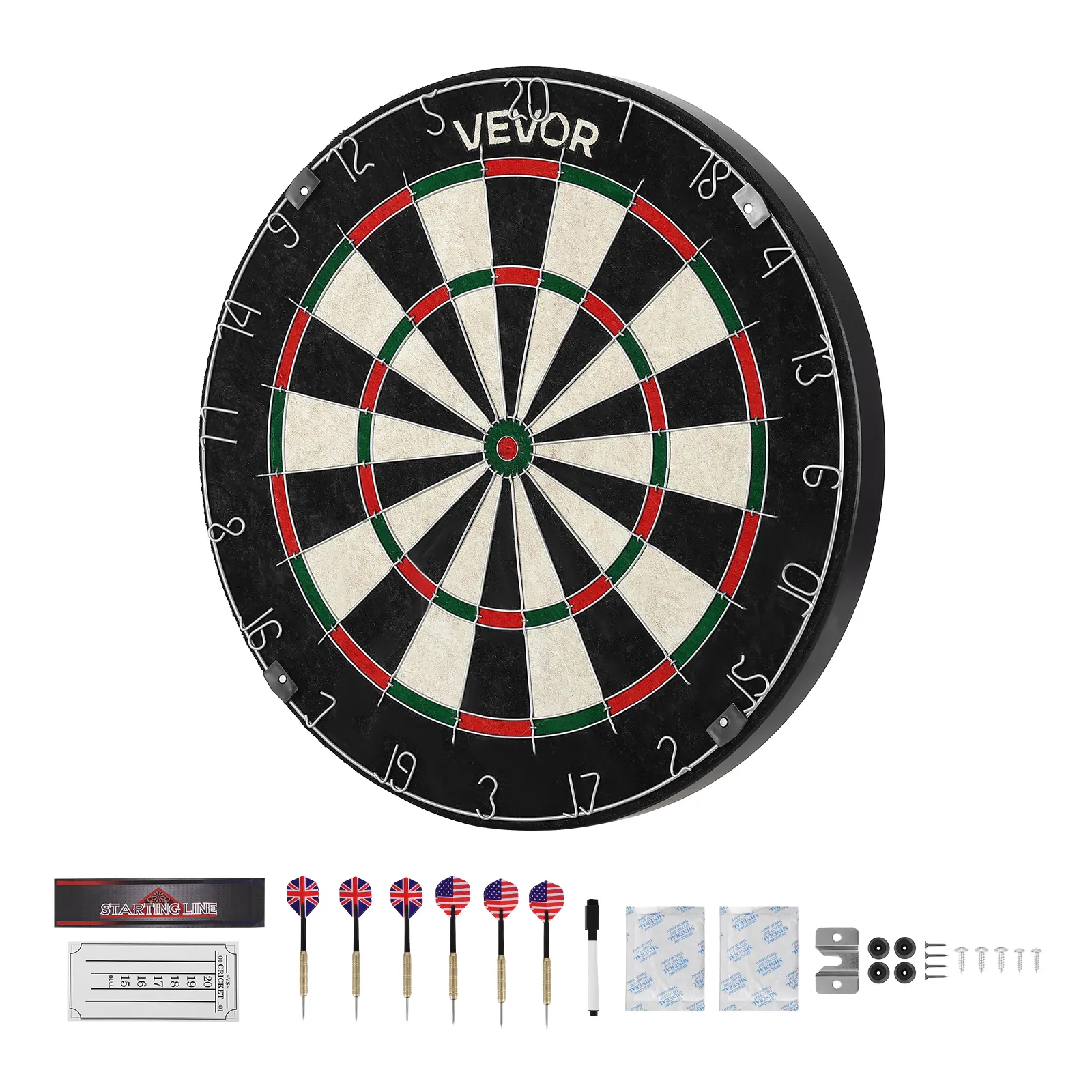 • Live Scoring for More Fun: Includes 6 steel tip darts, 1 scoreboard, 1 whiteboard marker, and 1 throwing line for live scoring. And the staple-free bullseye with circular galvanized steel wire increases hit rate, reduces bounce-outs, and delivers more accurate throws