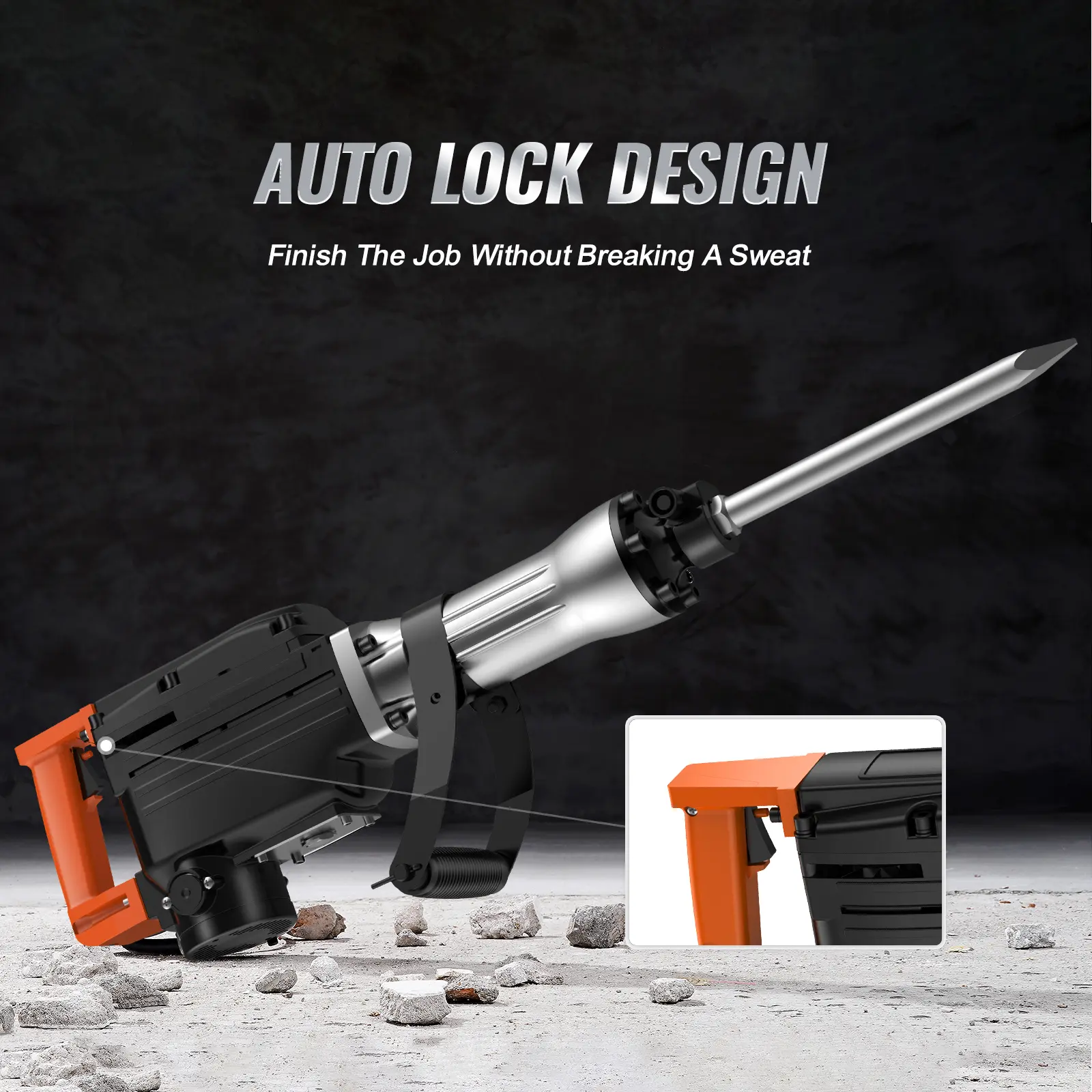 • Designed To Go Above And Beyond: The 360°rotary handle reduces fatigue during prolonged work. It provides accuracy and precision in some relatively narrow places. The demolition hammer is also equipped with a suitcase for carrying conveniently. The locking button can automatically maintain operation, saving effort.