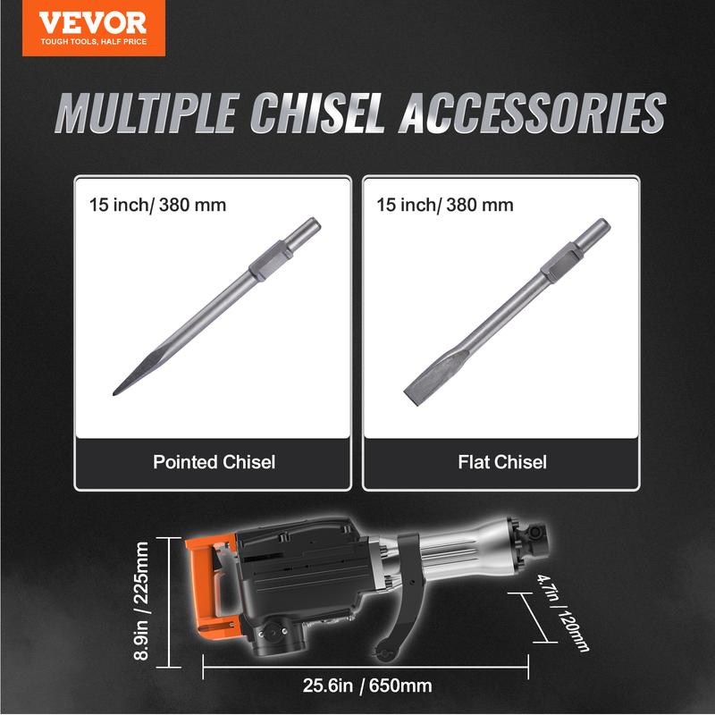 • Wide Range of Applications: The 110V power demolition drills & hammers include 2 chisel bits(flat chisel and point chisel). It is perfect for demolition, trenching, chipping, and breaking holes in concrete, block, brick, and tile. It is also ideal for various applications such as pipeline, mechanical installation, drainage facilities construction, housing foundation removal, concrete slab, oil chimney, interior decoration, and much more!