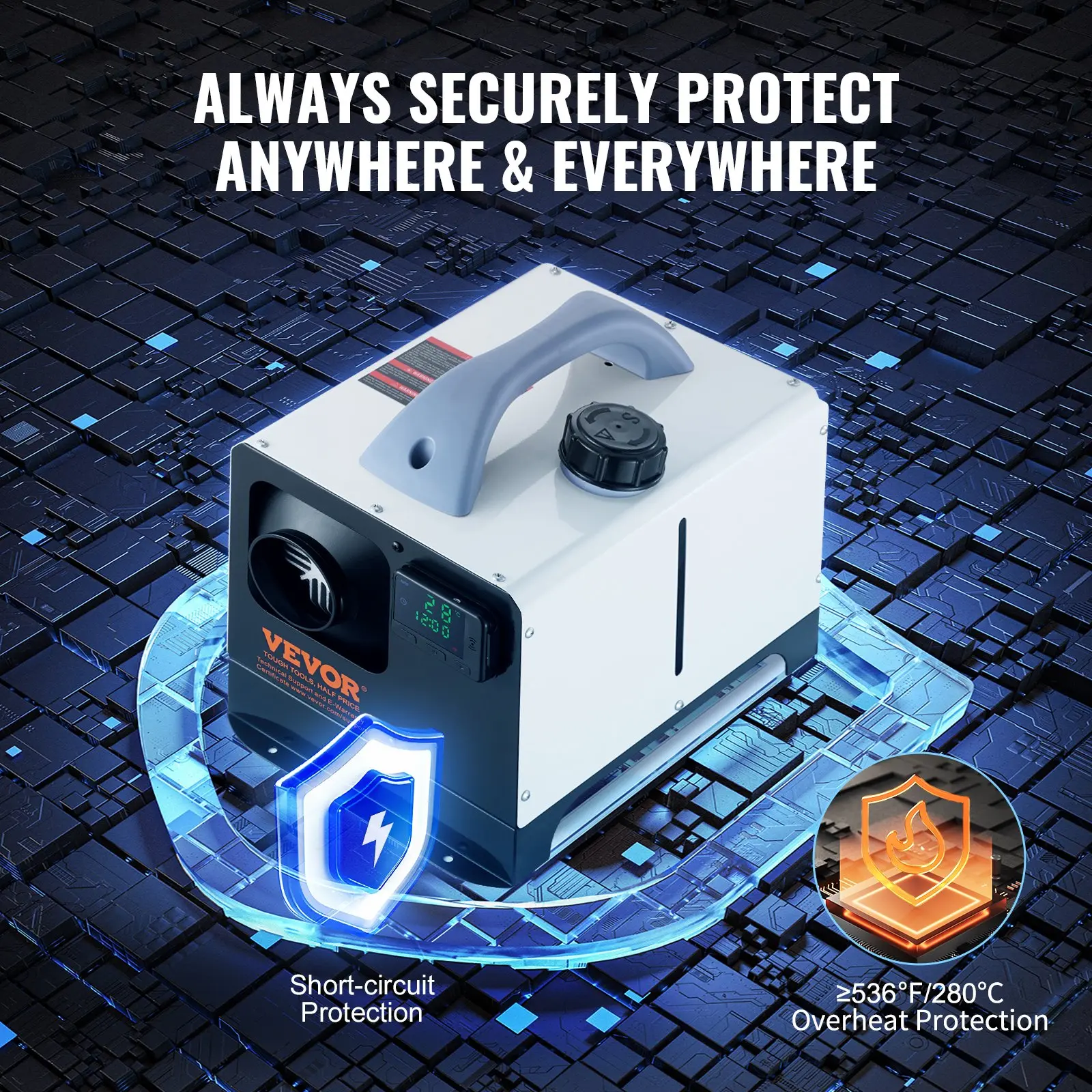 I was really excited to get my second Vevor heater till I discovered the white cover of it is dented from factory.Definitely not cool it was dented before it was even packaged at the facility. Not a happy customer