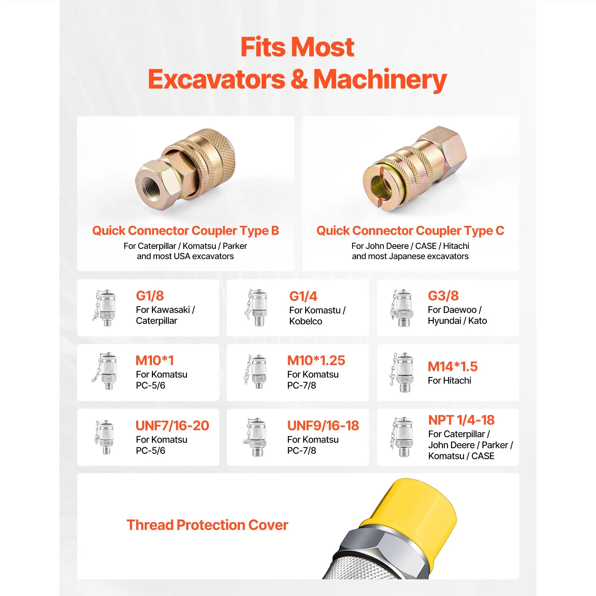 • Wide Compatibility: This hydraulic pressure gauge kit covers G, M, UNF, and NPT thread types and includes Type B and Type C quick connectors for multiple hydraulic systems. The flexible hose easily extends into narrow or hard-to-reach testing points
