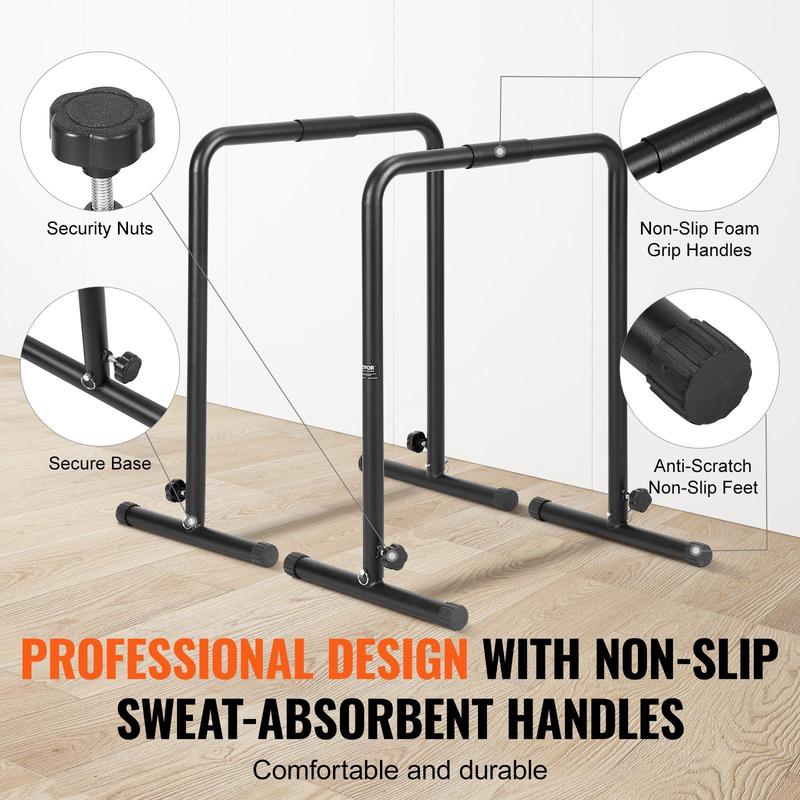 • Comfort & Security Combo: Get ready for a workout experience like no other. Our portable dip bar features foam-padded, non-slip handles that are durable and tear-resistant. Adjusting positions is a cinch, thanks to secure locking nuts. And those non-slip rubber feet keep things quiet and protect your floors – win-win!