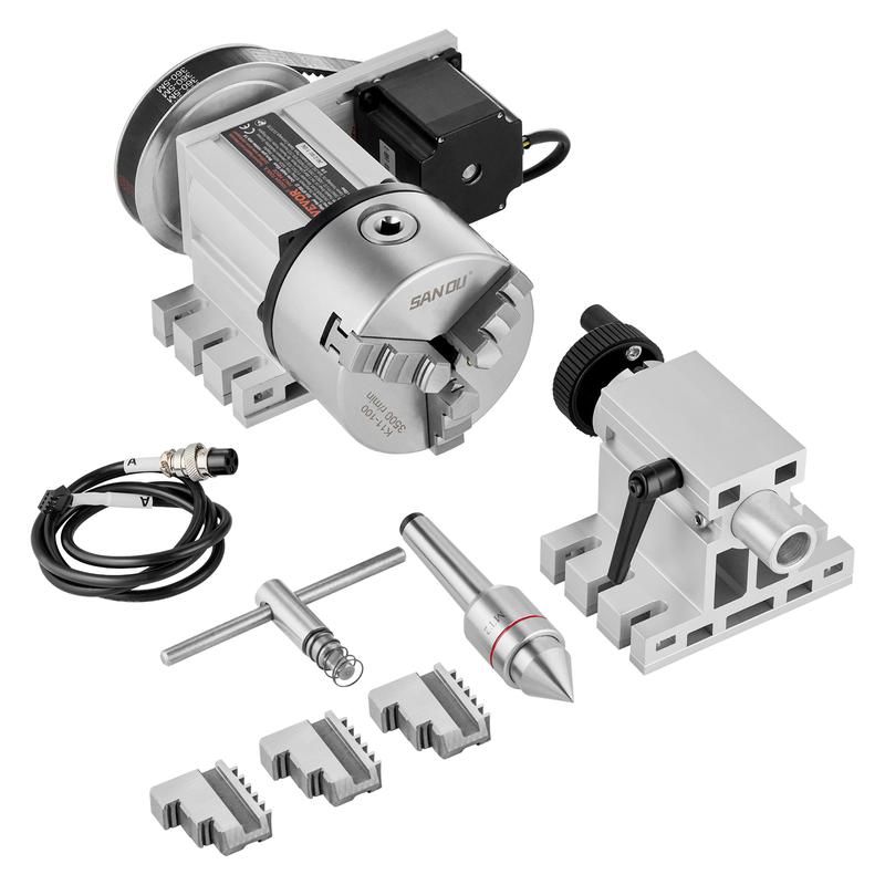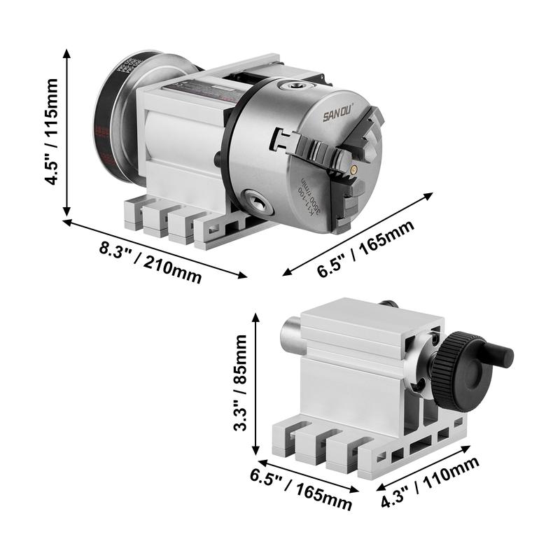 • CNC Rotational Axis 4th Axis: Transform your CNC machine with the capability to carve from various angles and positions, effortlessly processing complex parts with curves or angular features. Featuring a K11-100mm 3-jaw chuck, this dividing head for milling machine boasts an inner through-hole diameter of 0.9"/22 mm and a center height of 2.6"/65 mm, enabling you to tackle intricate designs with ease and precision.