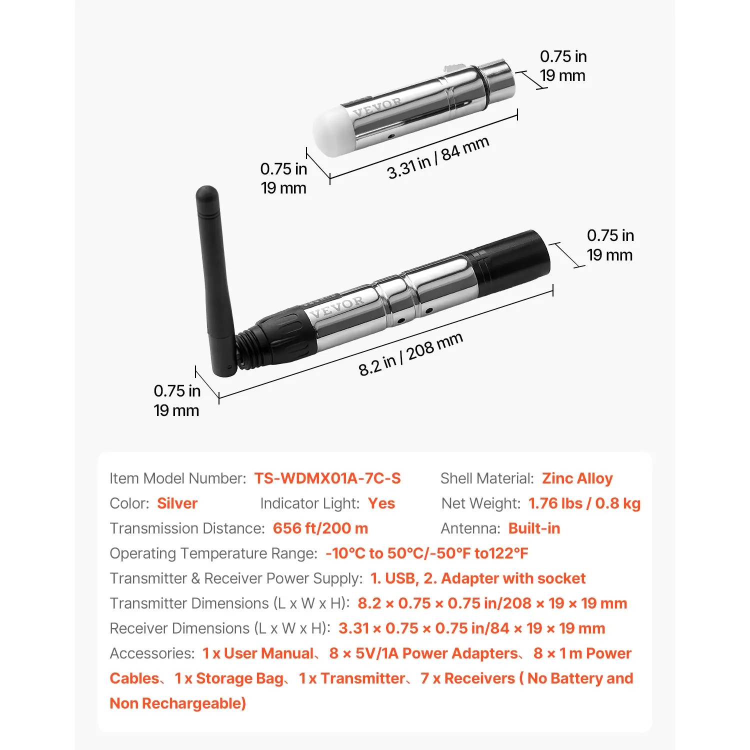 Setting up a flawless light show just got easier with this VEVOR DMX Wireless Receiver and Transmitter kit. Imagine controlling your LED stage or DJ party lights without messy cables holding you back. This kit includes 7 receivers and 1 transmitter operating on a 2.4G ISM band with 126 channels, designed to reduce interference and ensure smooth, real-time lighting responses. With a robust 656 ft transmission range, it’s perfect for indoor concerts, bars, or any event needing dynamic lighting effects.