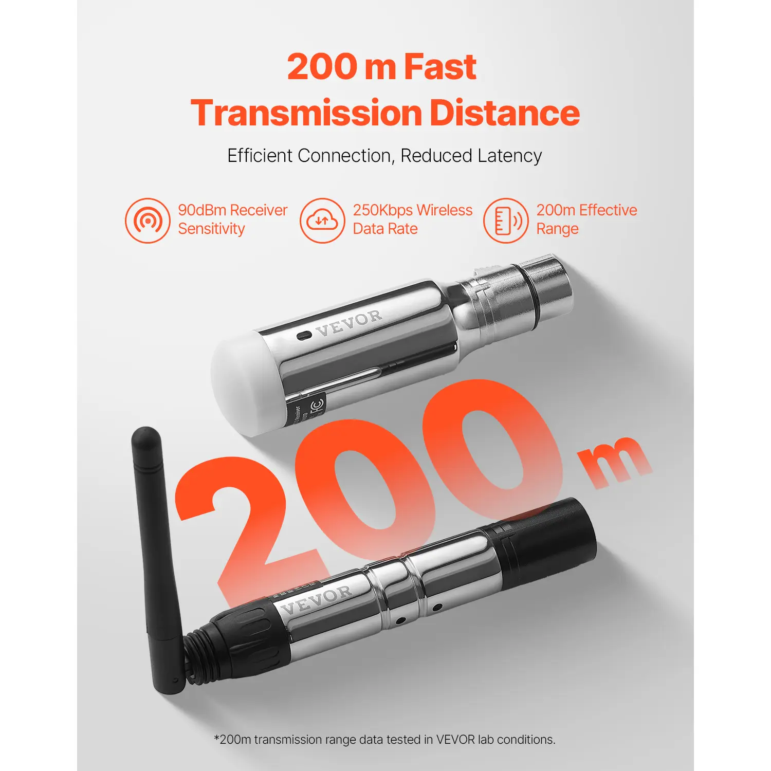 • Rapid Data Transmission: With a 656 ft/200 m range, the DMX wireless system suits indoor music and stage performances. Its -90dBm sensitivity and 250Kbps wireless data rate provide quick lighting responses with minimal delay, delivering ideal light shows.