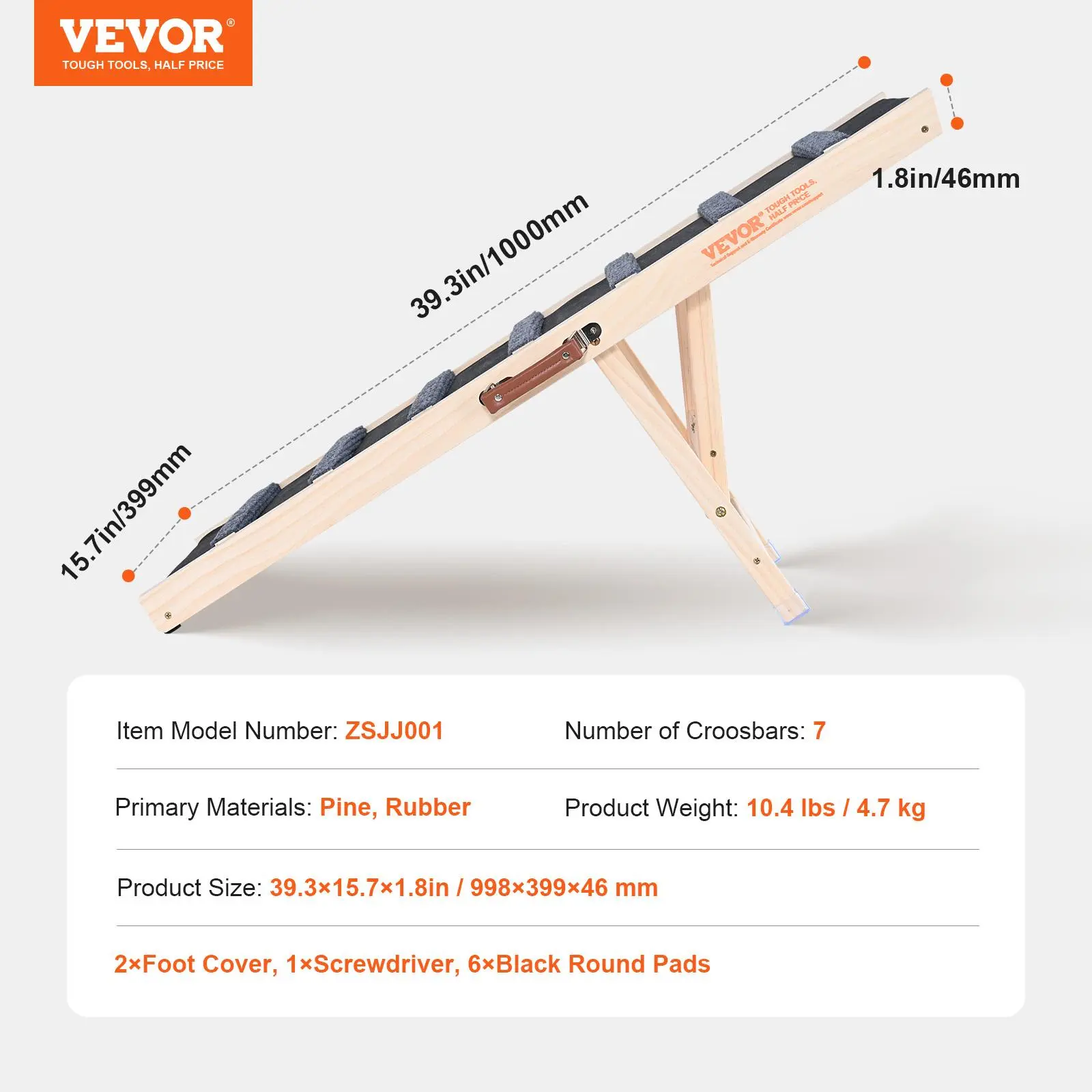 • Sturdy and Durable: Crafted from premium pine wood, this solid wood adjustable dog ramp is exceptionally stable and can support pets weighing up to 100 lbs. The addition of soft rubber footpads at the bottom ensures stability during your pet's ascent.