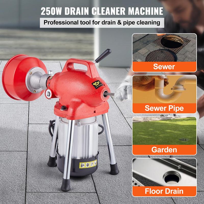 • 250W Efficient Motor: Our sewer auger features a powerful 250W motor, running at high speed for efficient and rapid drain cleaning. The copper wire motor provides superior conductivity, low resistance, and high efficiency, tackling tough clogs with ease