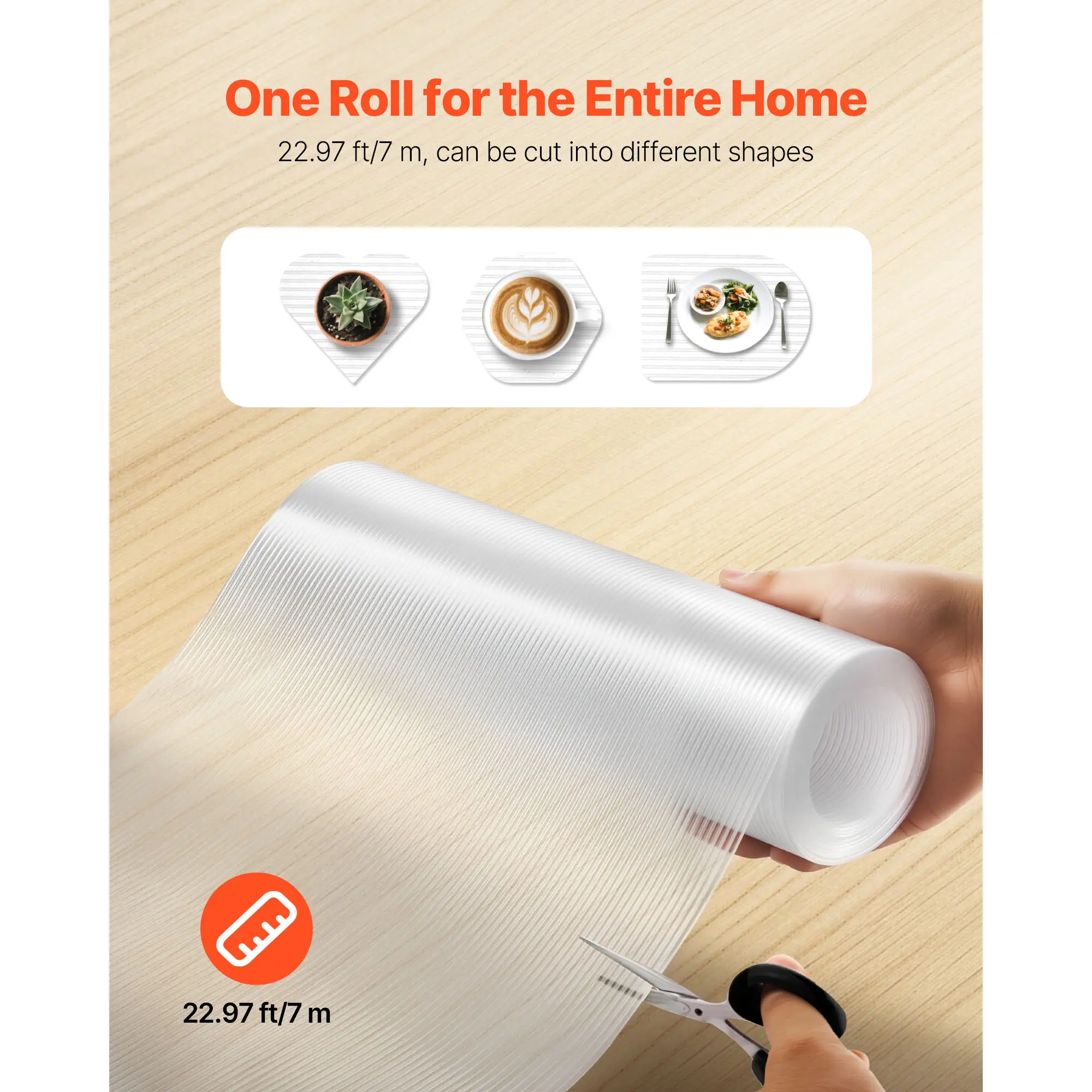 The 23 ft roll is easily cut to any space. The kitchen cabinet liner is nice for kitchens, bathrooms, and offices. It combines practical functionality with an elegant look, keeping your home beautifully organized.