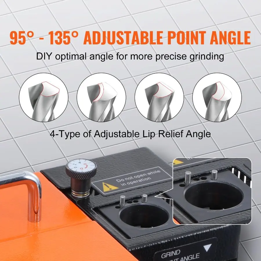 Experience precision with VEVOR drill bits sharpener! With 95-135 adjustable point angle, 4 types of lip relief angle, and 11 collets, it ensures accurate sharpening for 3-13 diameters of drill bits. Choose between CBN or SDC grinding wheels for different materials to optimize efficiency.