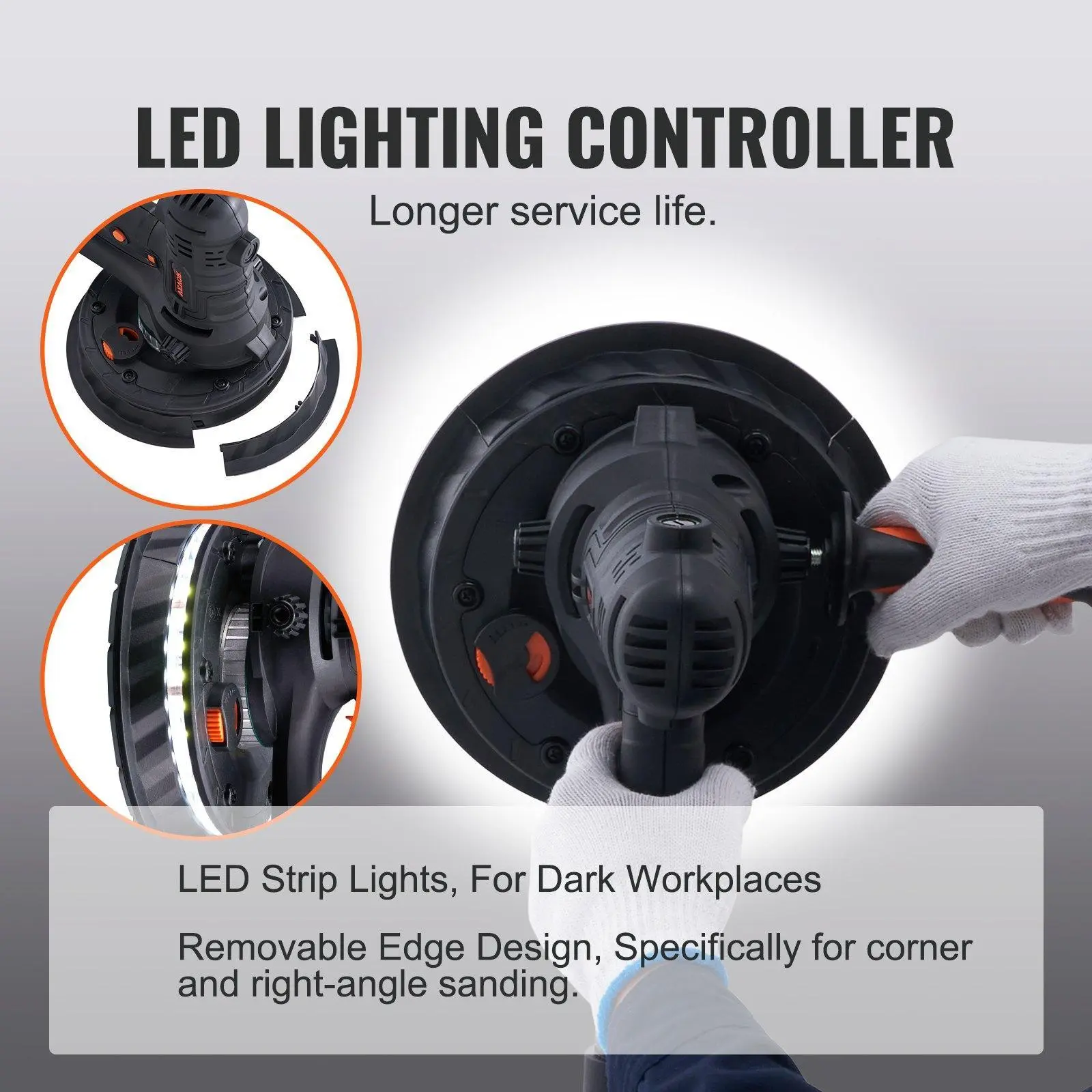 5. VEVOR Drywall Sander 800W Brush Motor 1200-2300RPM Variable Speed & Auto Vacuum