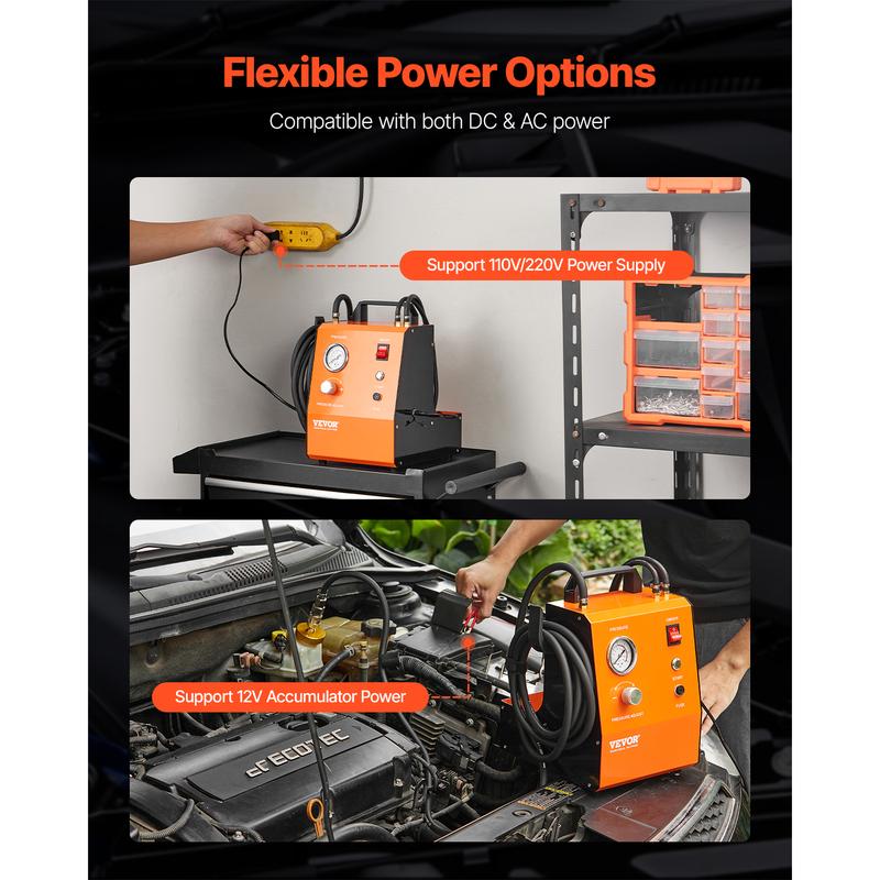 • Flexible Power Supply: Supports 12V accumulator and 110V/220V power sources. It offers convenience and efficiency for brake fluid replacement in indoor and outdoor environments.